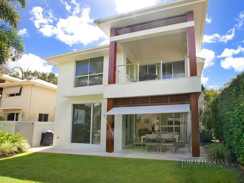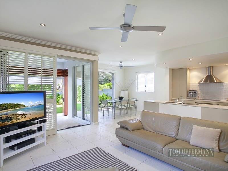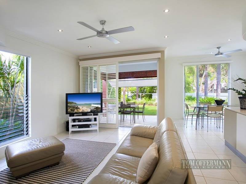 The home consists of three bedrooms, with two bathrooms, with the extensive main bedroom, parents retreat and spacious ensuite upstairs. From here there are views over the Noosa Waters waterways which are approximately thirty metres away.