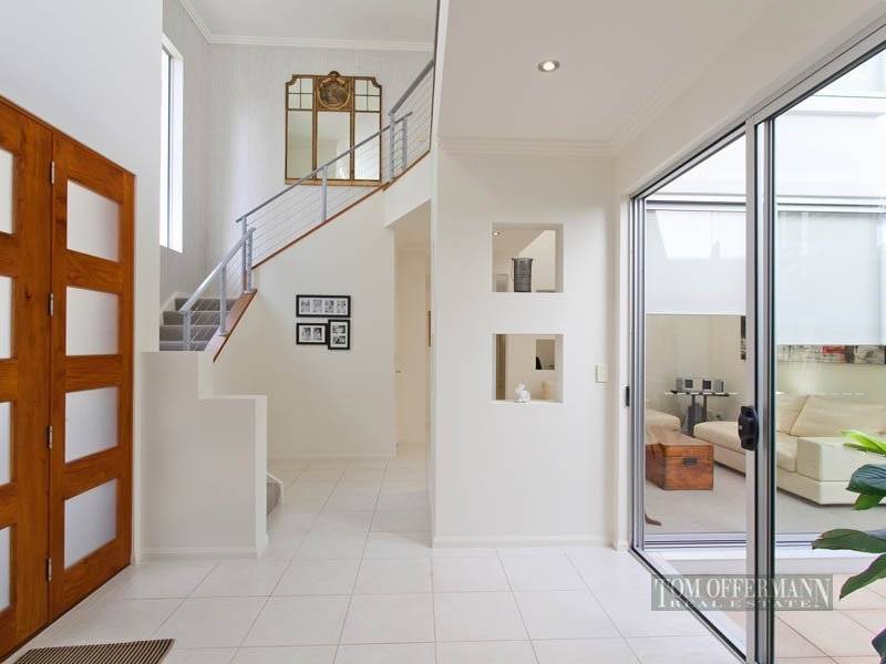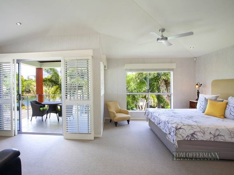 Impressive timber doors lead to the inviting entrance foyer and into open plan living areas and then to the spacious entertaining deck set back from lush tropical gardens and manicured lawn.