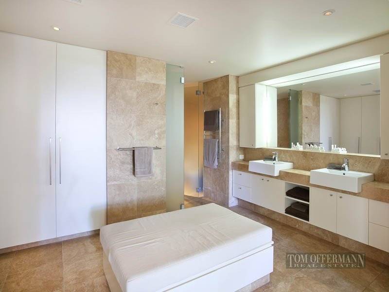 Take the elevator from a glass security door lobby, swing the solid timber door and a world of refined luxury draws you into wall free living areas anchored by a Meile equipped island kitchen, with pale stone benches, nearby scullery with the second of two dishwashers, soft close systems and a satin two pak finish to cabinets. A full width balcony with large stacker glass doors links to an indulgently large main bedroom with dressing room, walls of cupboards and a gorgeous floor to ceiling tiled bathroom with frosted glass door shower, toilet,/bidet and a private podium spa in the treetops. Travertine floors, pale honey timber doors and a soft white colour scheme capture light from the northern aspect. There is a large laundry, powder room off the vestibule entry and a media room with concertina privacy doors. A hall door isolates two ensuited bedrooms in the southern wing overlooking the pool deck and gardens. Each of these beautifully detailed bedrooms steps onto a balcony. This is a Noosa Heads apartment you will be proud to call home.