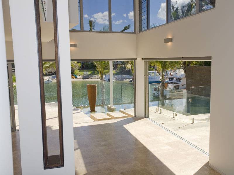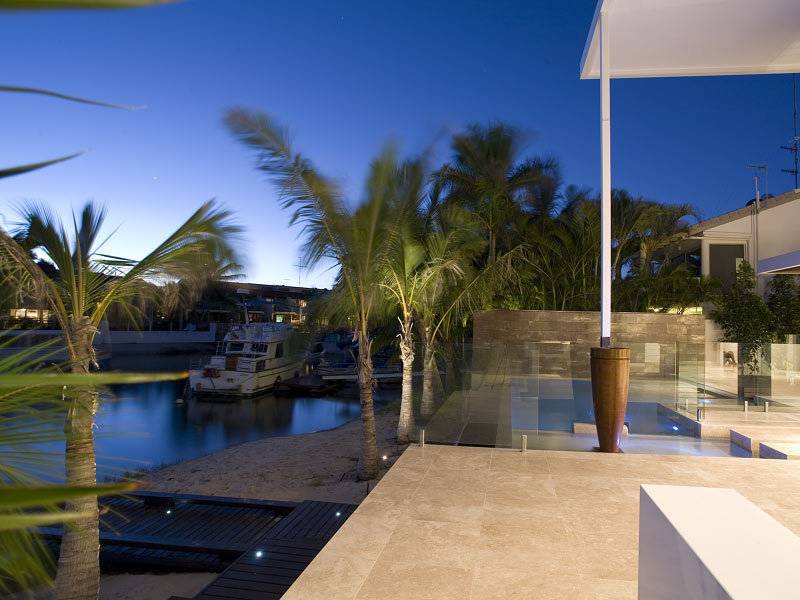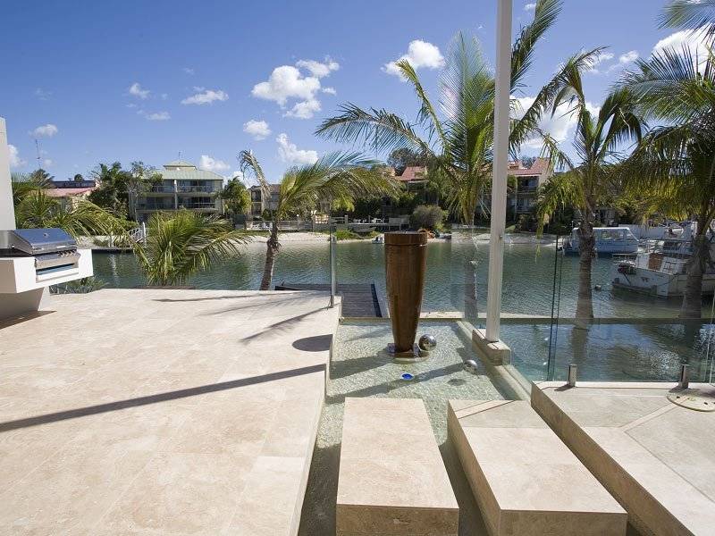 The owner has the option of using the main bedroom downstairs or the alternative main bedroom upstairs with both having water views. Also on the ground floor is a food preparation room off the smart modern kitchen, a media room and a very generous double garage. The wet edge pool and a water feature form part of the roomy outside entertaining deck, which wraps around two sides of this waterfront home. Upstairs accompanying 3 ensuited bedrooms is the library. Quality construction and inclusions through out including, travertine marble tiles, Smeg appliances, verisol automated blinds, CBUS home automation, cedar internal doors, granite kitchen and vanity benchtops and full security back to base system. $50,000 Furniture/Boat package is included.