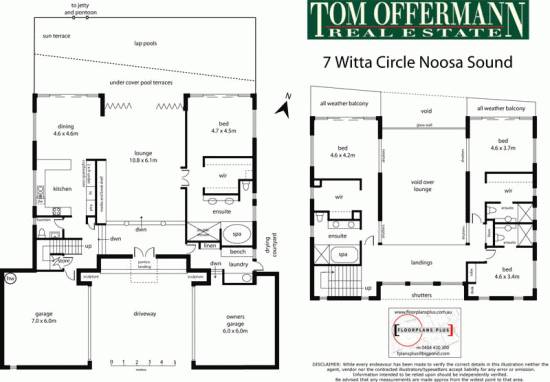 7 WITTA CIRCLE - Features in a snapshot: 4 bedrooms, 4 bathrooms, 4 lock up garages, 612 square metre allotment, absolute water frontage, architect design, north facing to Noosa River, approx 22 metres sandy beachfront, lap pool, fixed pier floating pontoon, powder room, ducted air conditioning, core filled cement slab construction & off street parking for 6 cars