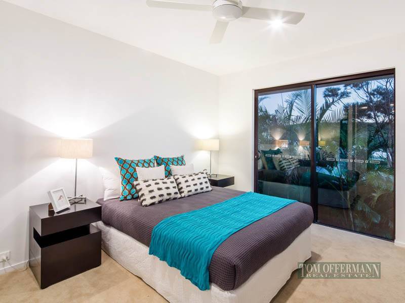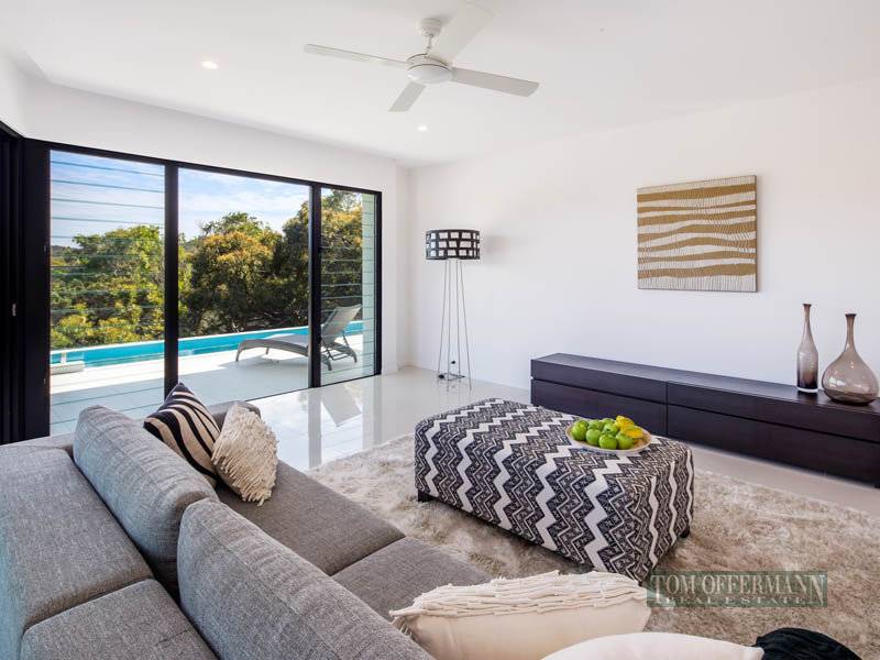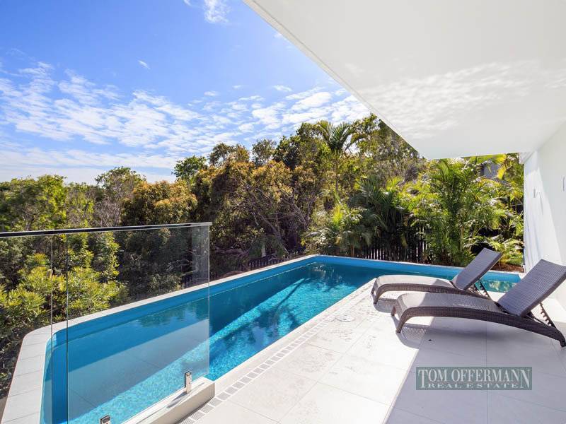 Positioned in a tranquil leafy cul de sac of only a handful of homes on the verge of the park, this magnificent new architectural designed home overlooks the forested slopes of the Noosa National Park and coastal views.