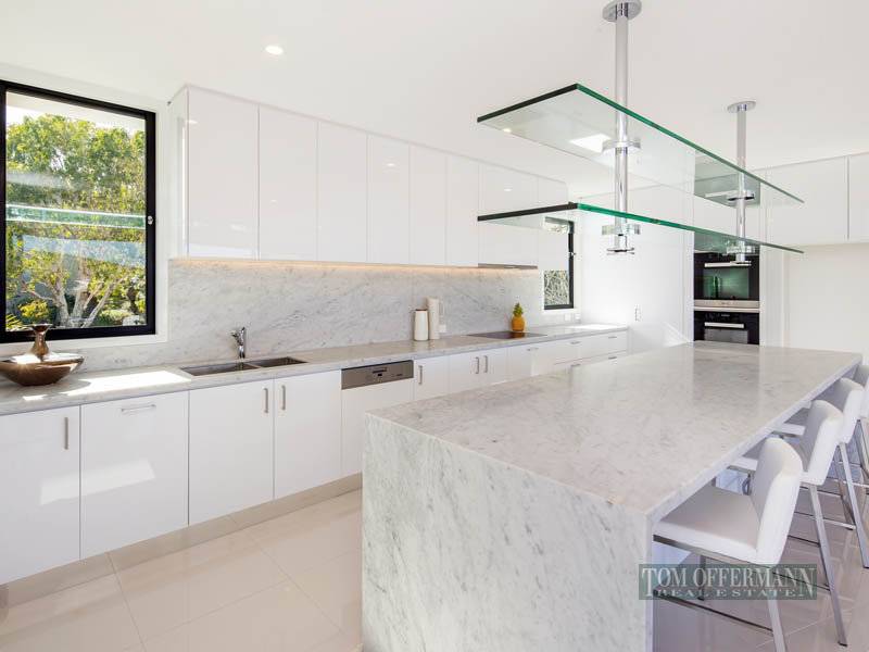 The state of the art kitchen with Miele appliances and Cararra Marble bench tops and splash backs has been designed with great attention to detail.