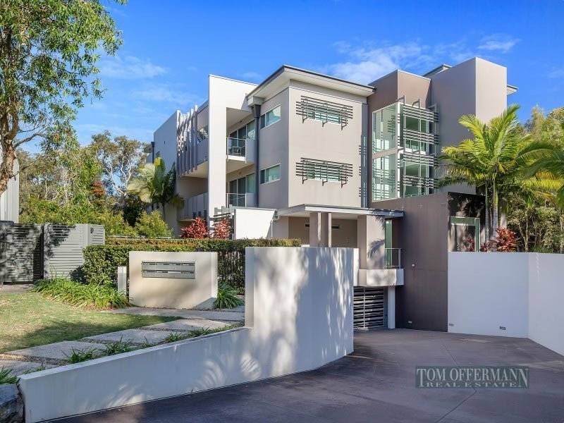 The inbuilt security and unrivalled privacy of the exclusive Visage golf course edged precinct at the base of mighty Mt Coolum, sets the scene for this boutique apartment building positioned right to the end of a beautifully landscaped cul de sac. The deep tones of an exterior render and clean architectural lines sit easily into the natural vegetation of paperbark and eucalypt bordering the fairway, while the quality and appeal of powder coated doors and windows adds strength of a commercial build.
