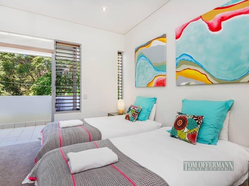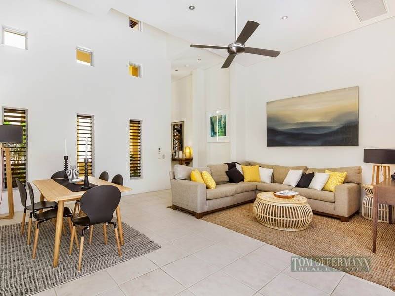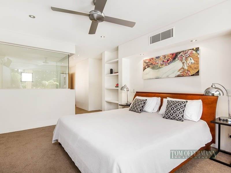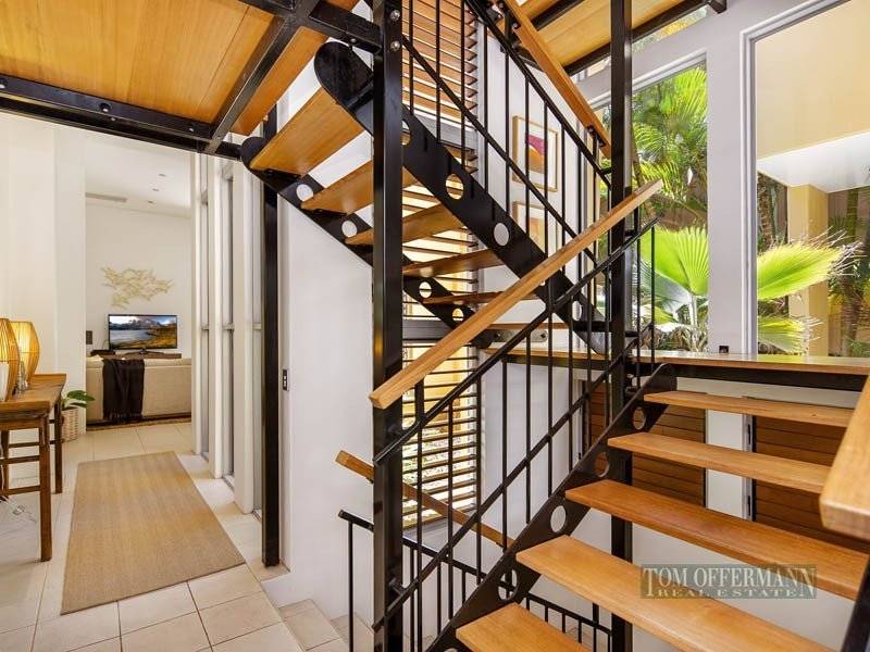 Swing in to the concrete drive alongside a security door courtyard and a remote operated gate slides to a very large basement with three parking bays and storage. One is caged for securing the surfboards, bikes and maybe extra beach buggy for north shore adventures. No parking problems and footsteps to the famed point breaks of Noosa is every surfers dream. There is a large laundry room and internal access to a striking steel staircase and the rich tone of timber treads. The structural integrity of suspended slab and rendered block construction comes into play as you rise through the building.