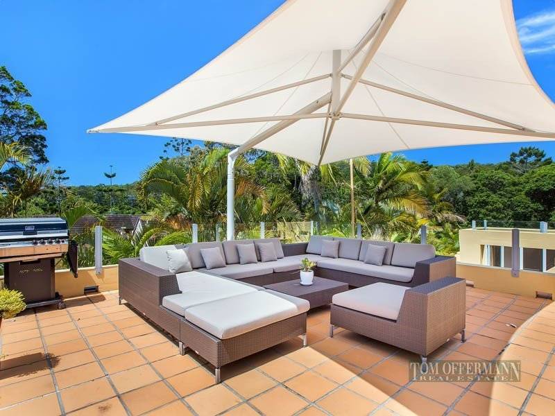 Features in a snapshot: Laguna Bay and hinterland views, 477sq metres of living, 3 car parking/storage, reverse cycle air-conditioning, brand new kitchen, powder room, plunge pool, rooftop terrace, tinted glass, fully furnished, safe, security gate entry, 2 minute walk to the waves, boardwalk access Hastings Street and Noosa Main Beach.