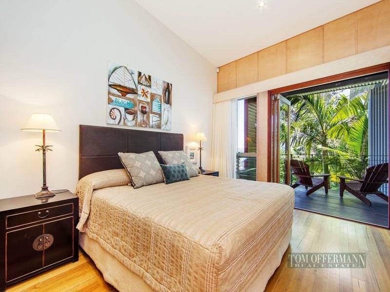 Once home to a thriving banana plantation and enjoying a secluded valley location above Laguna Bay and Noosa's famed point breaks, these villas enjoy a leafy canopy outlook with birdsong and waves as a soothing soundtrack. All the colour and excitement of Hastings Street is only a short stroll from the private confines of this ruggedly handsome freestanding villa, while extensive glazing and open living domains highlight the rich glow of marine and selected timbers across both floors. An open galley kitchen with stone bench tops, wall mounted cupboard space, gas hob, stainless appliances and sit up breakfast bar, enjoys an intimate connection to casual living spaces Each of the double bedrooms has a private balcony and direct access to a timelessly prepared bathroom. Experience Noosa in this secluded sun dappled hillside above the bay, catch a gentle roller on one of the points, stride the boardwalk along Noosa Main Beach, dine at one of the award winning restaurants, then stroll home under a moonlit sky.