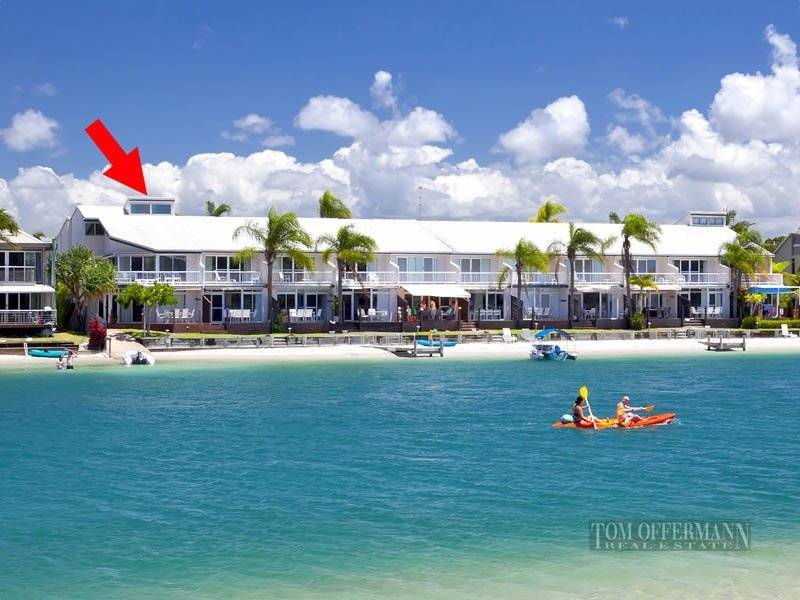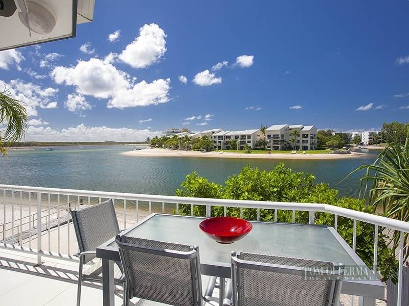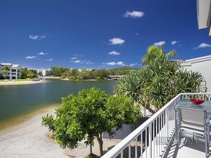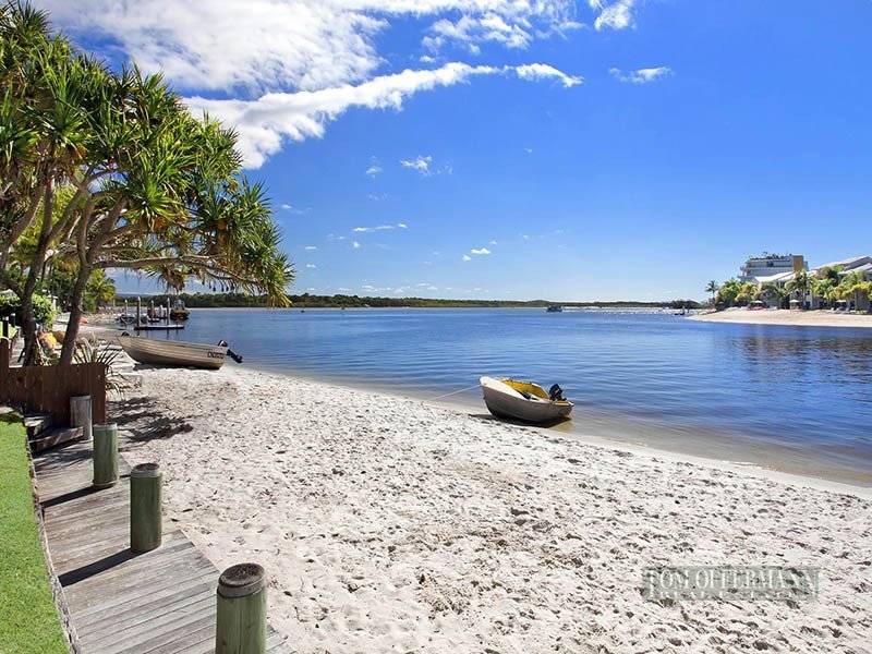 This absolute riverfront, north-facing apartment overlooks the private sandy beach and Noosa's river playground.