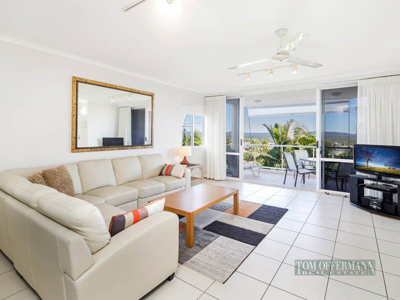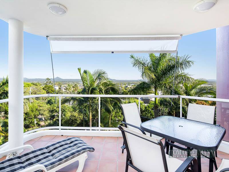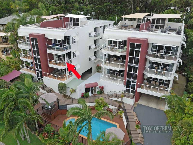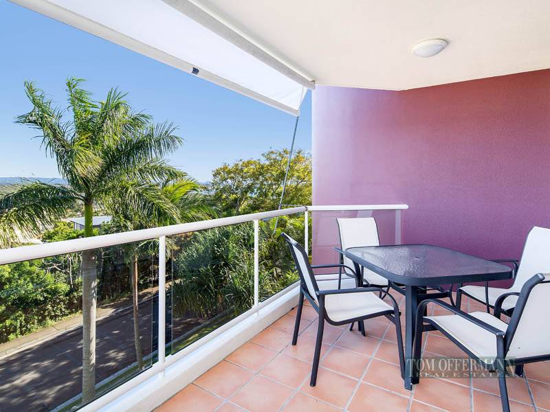 In a building that was recently painted and refurbished, apartment 6, 20 Edgar Bennett Avenue, Noosa Heads is nicely elevated and positioned on the high side of the street, enjoying outstanding vistas of Laguna Bay and hinterland beyond.