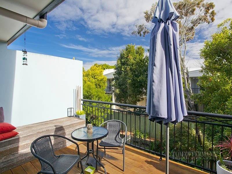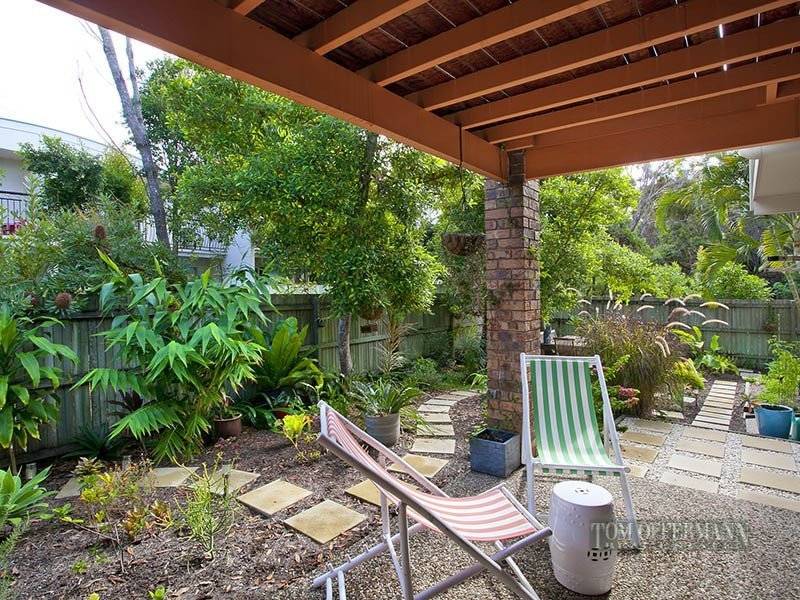 Upstairs the living area opens on to a balcony, which has a view across the good-sized landscaped courtyard where a mix of established trees and gardens, including a herb and vegetable patch envelop a quaint alfresco dining area.