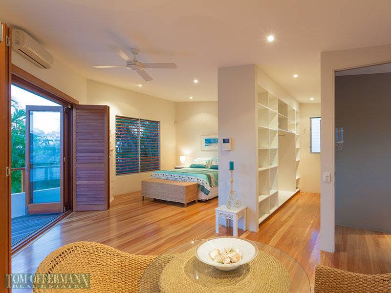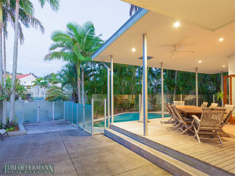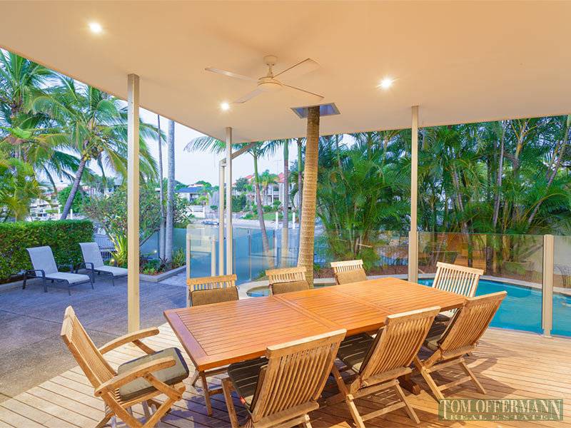 Features: 710 square metre allotment, absolute waterfront, tropical courtyard gardens, air-conditioned, ceiling fans, fireplace, media room, freeform pool, concrete boat ramp, roller door storage bay, fixed timber jetty