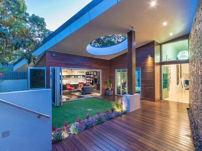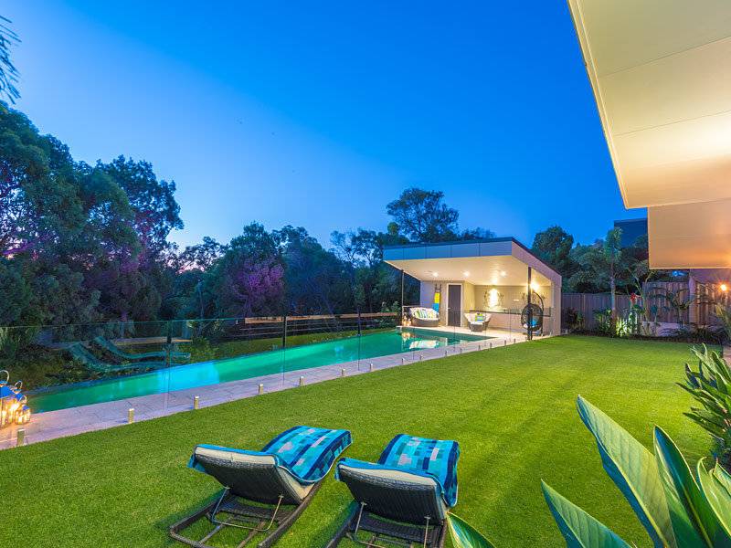 Close to a third of an acre provides the perfect template for expansive living and entertaining domains, wonderfully private bedroom suites and the futuristic flair of a home engineered to suit every single member of the family. The deep patina of an automatic timber gate slides away and you are drawn into a wonderfully large tropical courtyard where crab claw heliconia flourish above an under storey of lush lily.