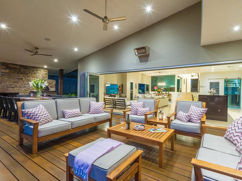 A state of the art island bench kitchen anchors living domains, with a full complement of Meile appliances and a party friendly adjoining scullery. Drift on to the deck and the hand laid stone of a wood combustion fireplace incorporates an adobe pizza oven. A luxurious guest suite captures the ambience of a five star resort and in the other wing a large cinema room has sliding doors access to the grounds.