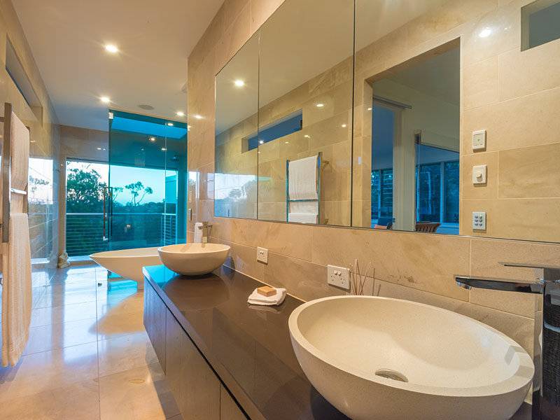 The sleekly styled courtyard office has a separate entry to the body of the house. The icing on this exciting coastal haven is an indulgently large main bedroom suite with sunroom, private lounge, walk in wardrobes to live with, sculpted freestanding bath and a combination indoor/outdoor shower. Sunsets drinks on the upper terrace while kids enjoy a swim, walk into town for dinner and a movie, or a fun filled evening around the fireplace and pizza oven; ultimately the choice is yours.