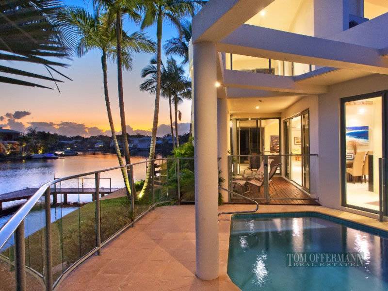 - Thoughtfully designed to take advantage of sweeping wide canal views and features full length verandahs on both levels overlooking the water. Heated pool on the ground level.