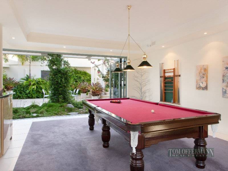 - 2.8m high ceilings throughout and two-storey high ceilings in the main living which flows into the billiards room that opens out to the pool on the water side and out to the courtyard on the northern side through bi-fold doors.