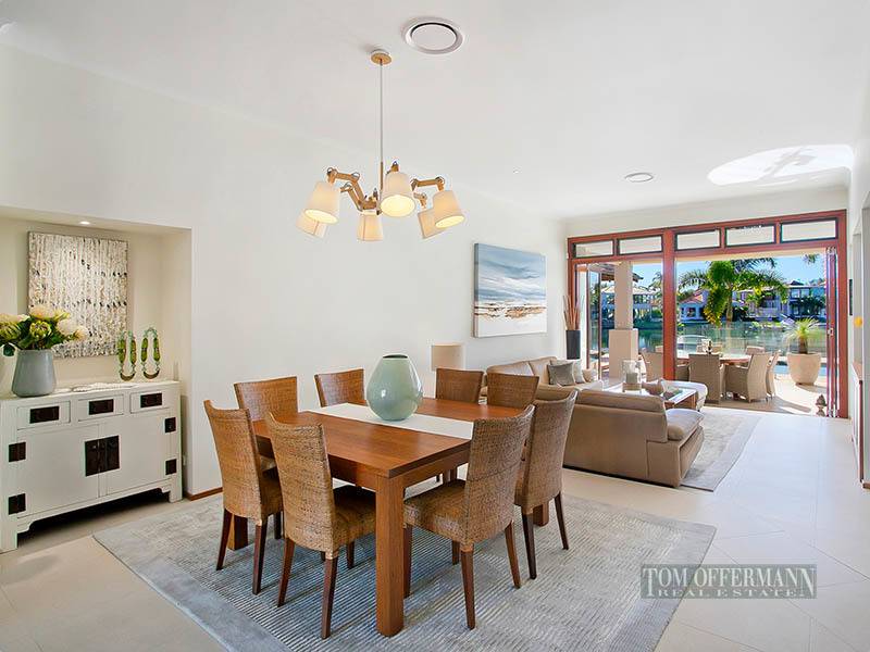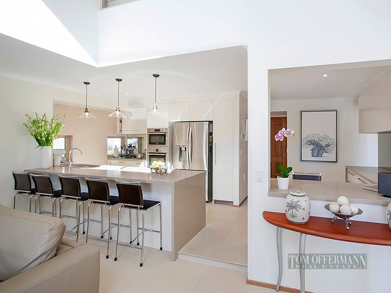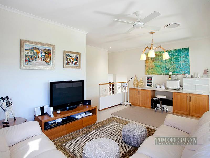 Accommodating 5 bedrooms with the master suite on the ground level and access to the sunny patio and water views. There is also a guest room with their own bathroom. Soaring ceilings to the lounge area with a casual family room and dining area complete with porcelain tiling and timber bi-fold doors