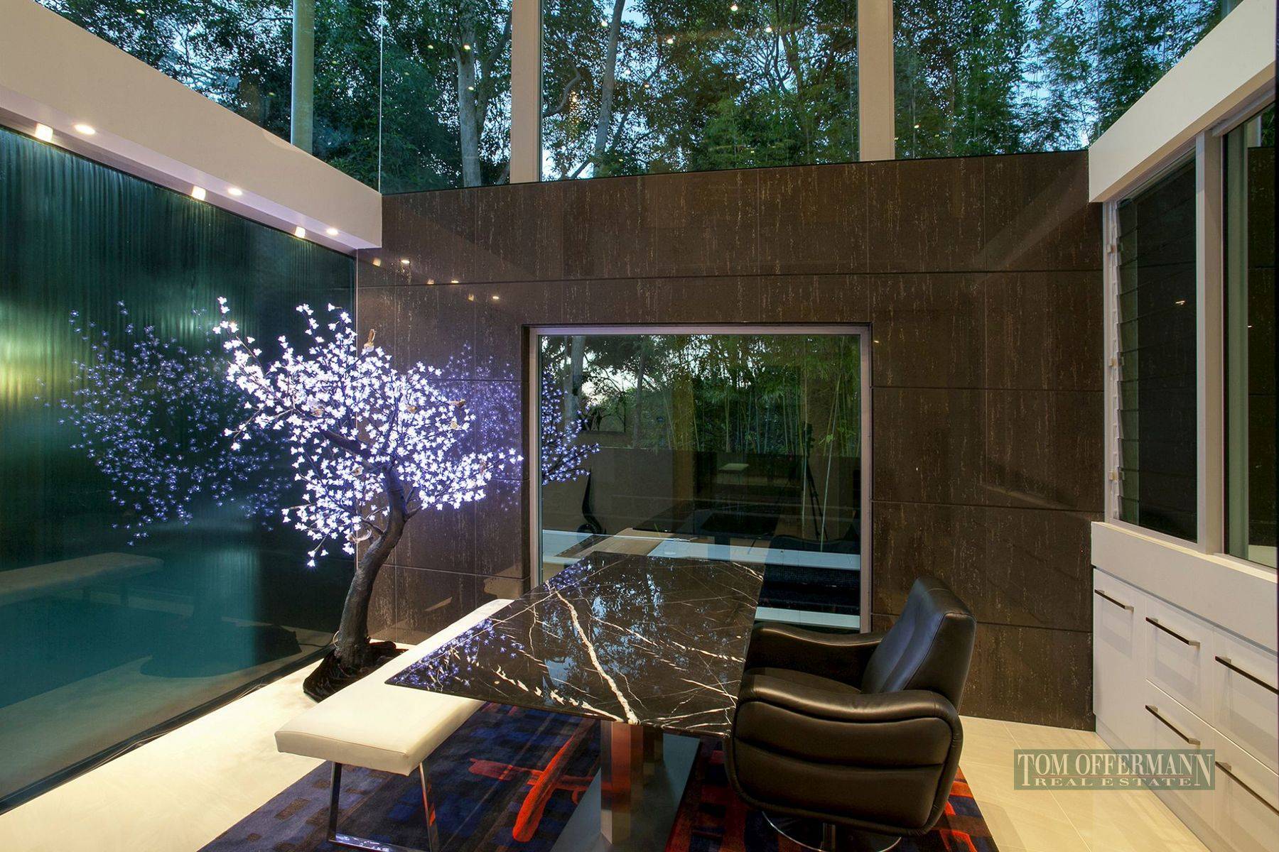 There is a home office with integrated storage, gallery/sitting room, entertainment games room with fully equipped wet bar and bi-fold doors to a north-facing garden courtyard with built-in barbecue and a wine fridge, plus heated spa, shimmering pool, plus a hot/cold outdoor shower.