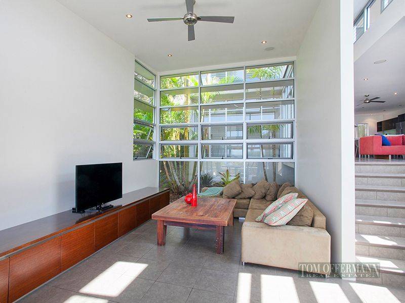 The top level is reserved for serene ocean view bedrooms. One bedroom has a wall of glass louvres framing views and a big bathroom with walk in frameless glass shower. The main bedroom has a spectacular outlook, floating double vanities in the ensuite, walk in wardrobes and a totally private under roof deck.