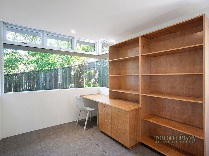 An aggregate driveway lifts to an automatic door garage with a wide turn parking bay and tall hedgerows edge a green corridor of Banksia and coastal vegetation along the northern boundary. Hopper windows frame a central courtyard and a gallery lit room opens to a raised under roof podium and a balcony extending some six metres to the sea. It's all about the views as you arrive at wall free mid-level living rooms. An infinity edge pool takes a straight line off the central stairwell and a wide timber tread staircase rises to top floor bedrooms. There is a bedroom on this level facing the ocean and a second room set up as a study with built- in desk could readily double as a fourth bedroom.