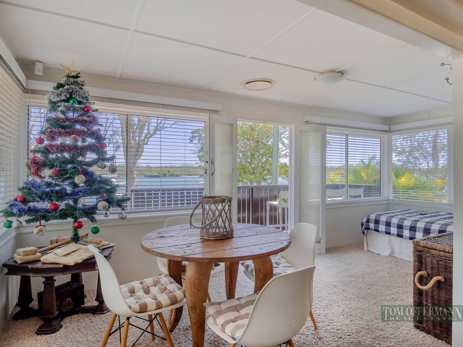 The living and dining area wraps around the front of the house and leads into the main bedroom. There's the perfect spot for a daybed, so you can sit and sip your coffee while you gaze out to the river. Or if it's a sunny day then there's plenty of space to enjoy that coffee out on the front porch.
