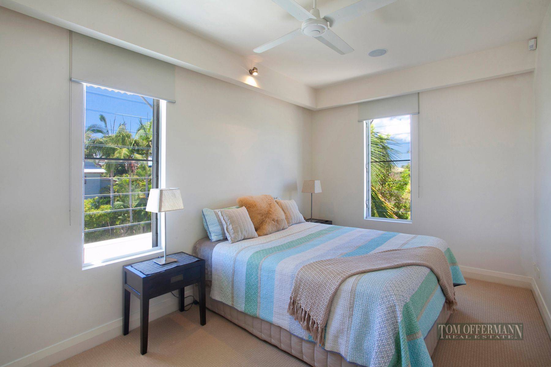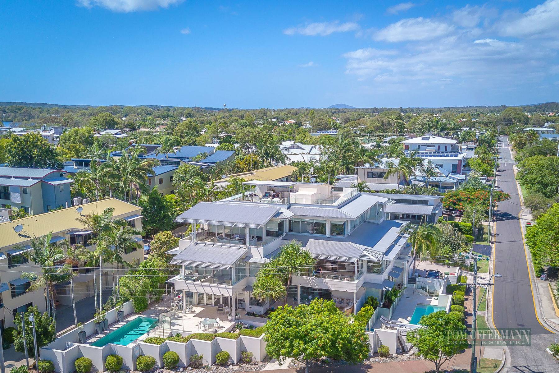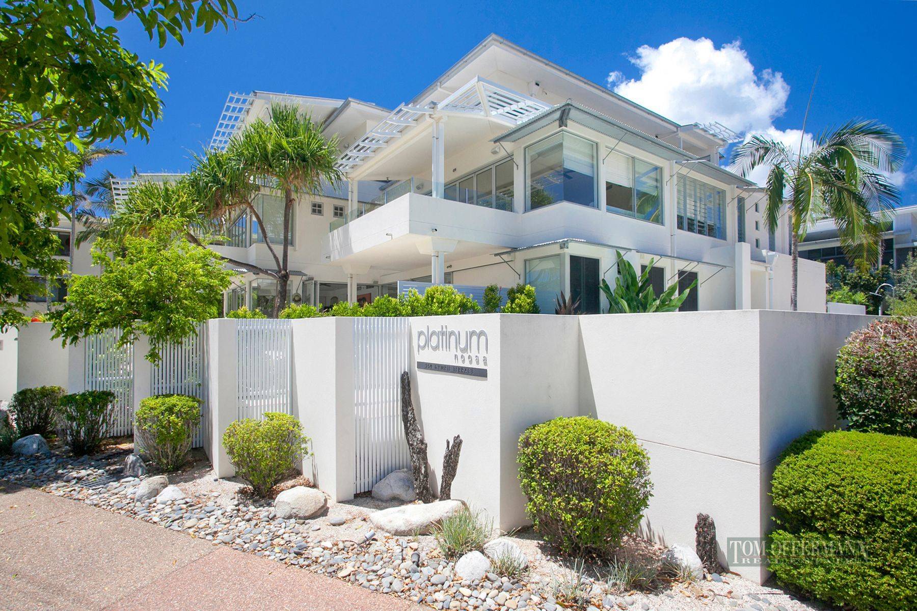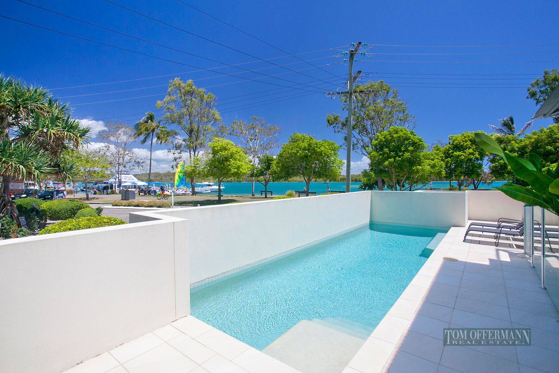 Constructed in 2005 & award winning Building of the year QBDA 2006 & Winner of Building Design Australia Awards 2007, Platinum by highly regarded designer Stephen Kidd; this three level security building has intercom pedestrian and vehicle access, double lock-up garage and walled courtyards where an iconic Pandanus palm majestically rises from poolside patios. A crisp white exterior colour scheme strikes an elegant pose to the natural beauty of the riverfront location and a wonderful northern aspect across the main arm of the Noosa River.