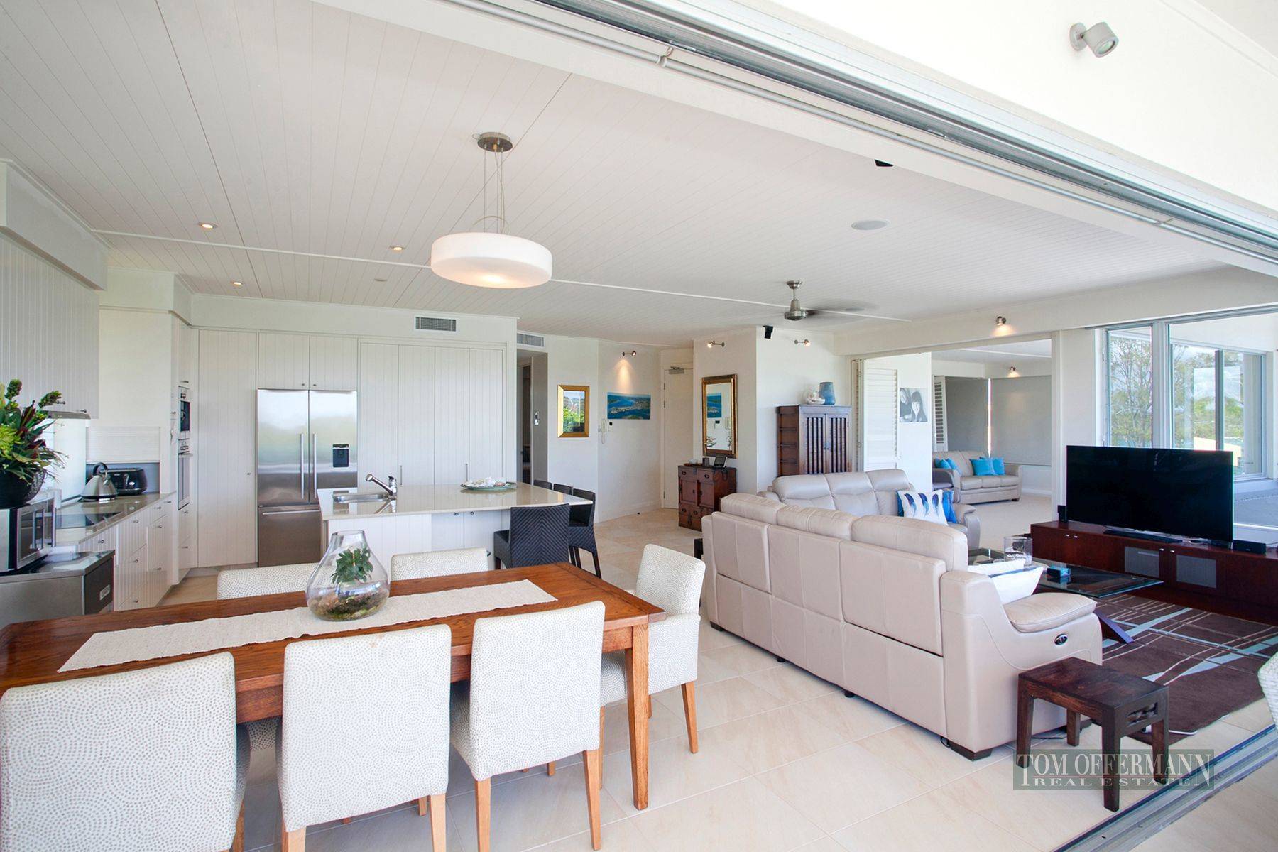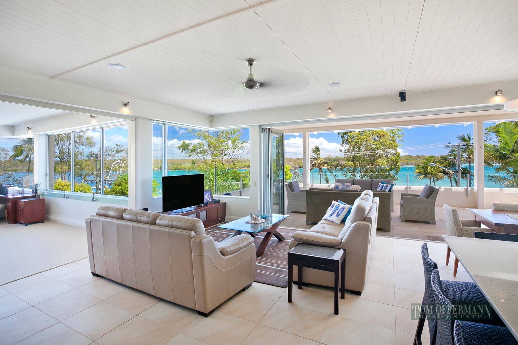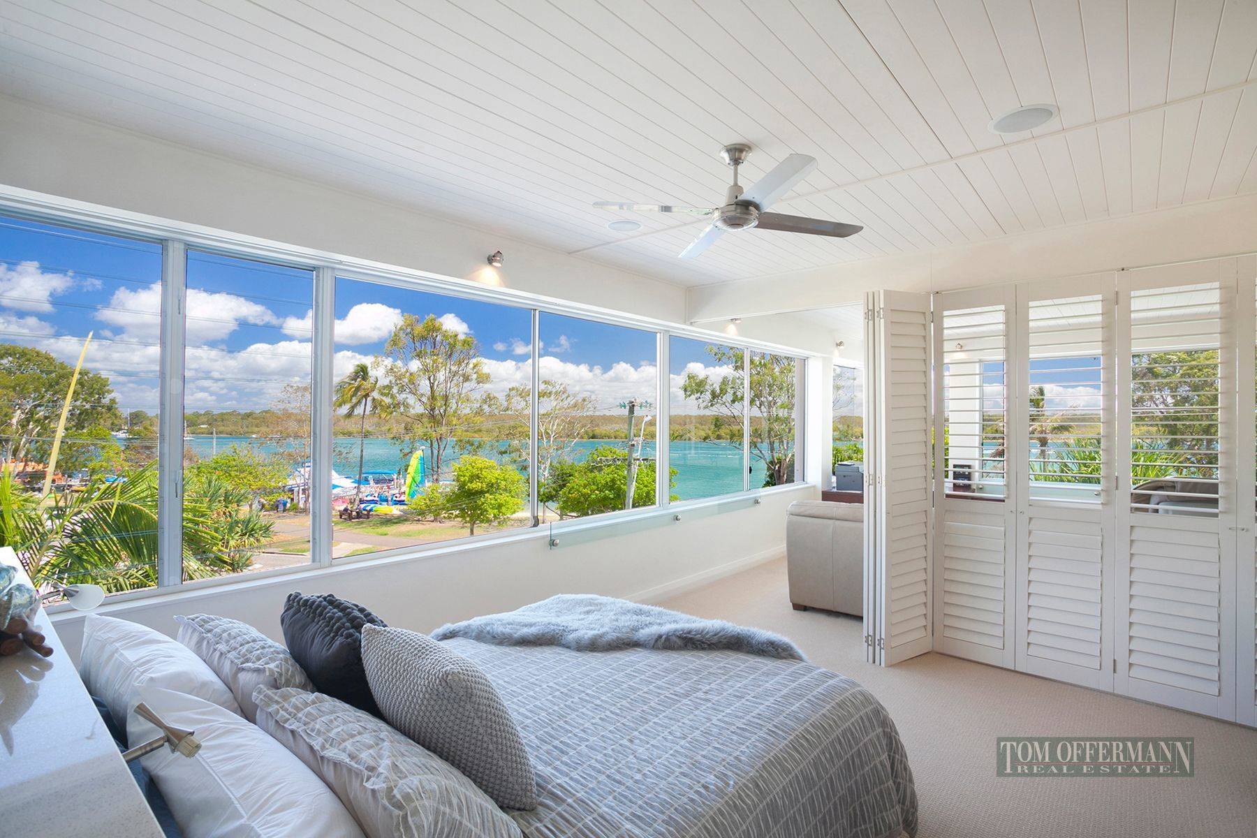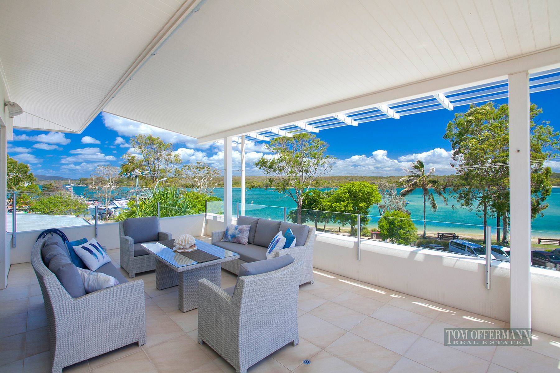 It's the attention to detail and uniformity that resonates throughout this waterfront apartment, with an Island bench kitchen dressed in vj timber cabinets, pale stone benches, soft close drawers, double sinks and a full complement of quality Meile appliances. Take one flight of stairs and a fantastic rooftop deck spans the full width of the building. A rope and eyelet fixed sail sits over the fixed barbecue station where you can view sunrise over Noosa National Park, the daily colour of river traffic and spectacular sunsets across hinterland mountain ranges. Ideal as a lock up and travel permanent base or highly sought after holiday and dining destination on the famous golden mile of Noosaville waterfront. Vibrant coffee bars, specialty retailers and a spoilt for choice array of quality restaurants within one minutes walk of this stunning Riverfront Penthouse.