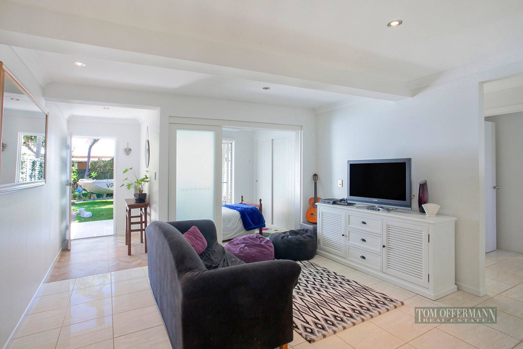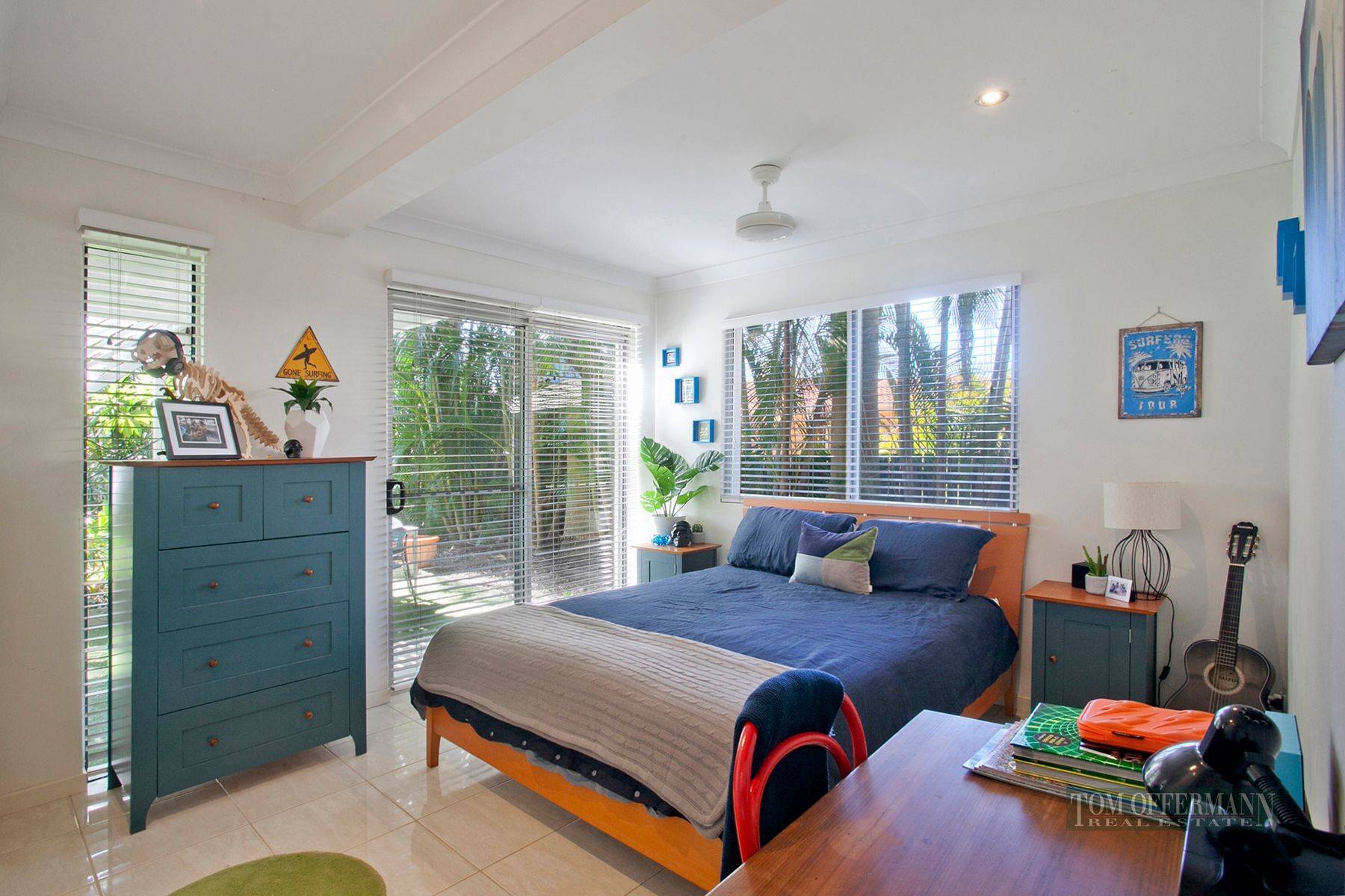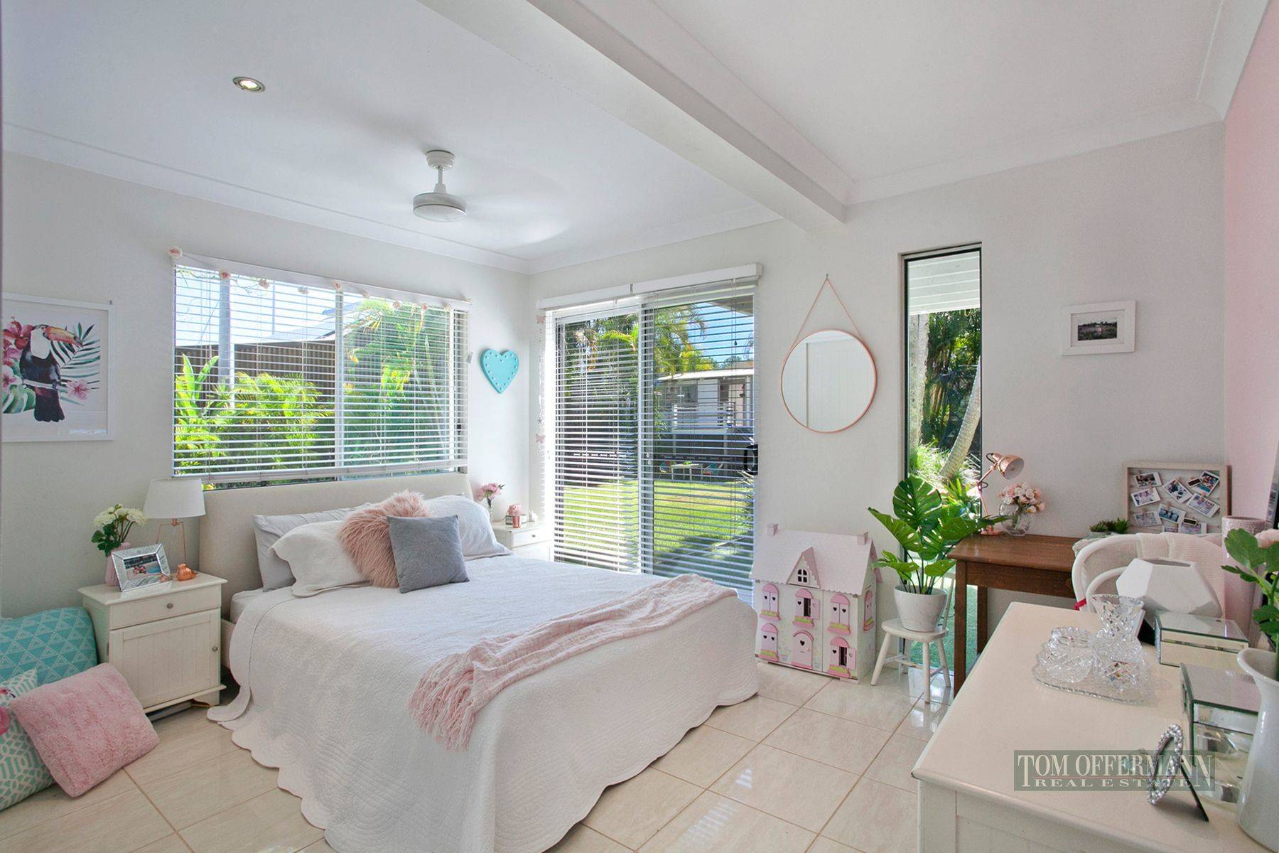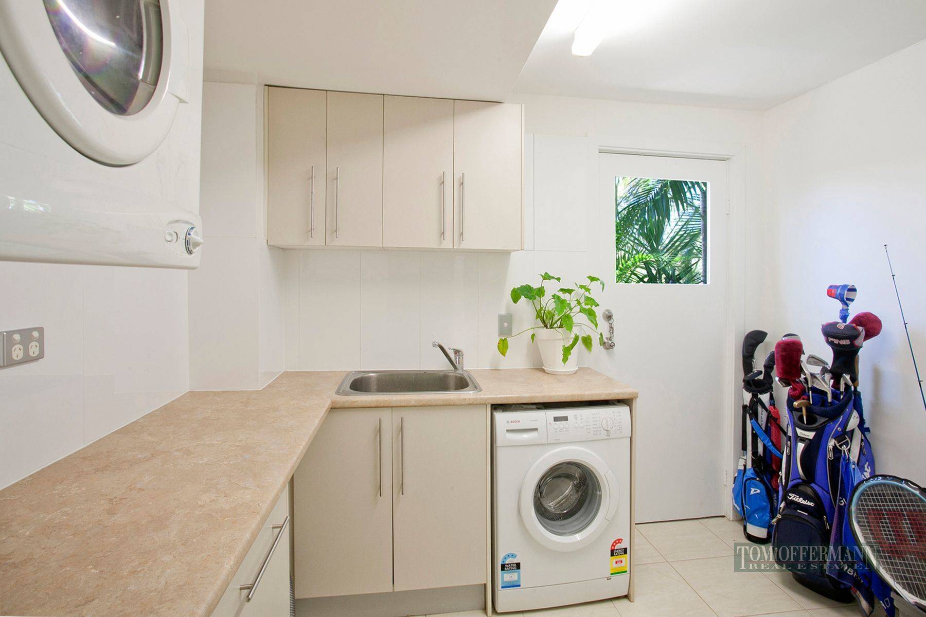 Positioned on a beautifully landscaped near quarter acre of leafy seclusion and in town privacy on the shoulder of Tewantin Village, a deep setback of kerbside gardens and hedged lillypilly line the front boundary of this captivating family residence and an old growth tuckeroo canopies a remote controlled sliding gate. The wide forecourt provides easy guest parking, the property is fully fenced and, aside from an automated door double garage there is easy boat storage and room for bikes, scooters and surfboards.