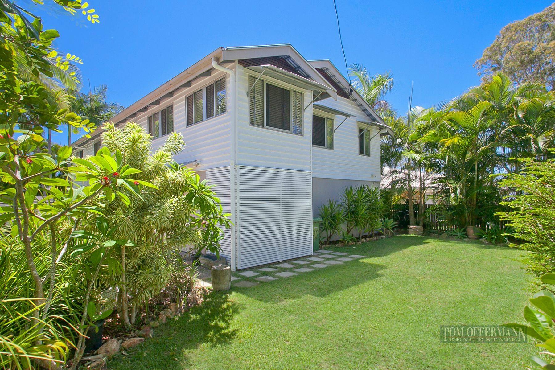 Border gardens are a sub-tropical profusion of mighty pandanus, fragrant frangipani and a large jacaranda set against agreen screen backdrop of golden cane and Alexandra palm. Jasmine espaliers white slatted panels alongside the main entry, lush grass wraps large side and rear grounds and a cubbyhouse in one corner of the grounds is the perfect spot for some quality kid time. The white exterior of the upper floor is nicely offset by a rendered finish in a pale grey shade.