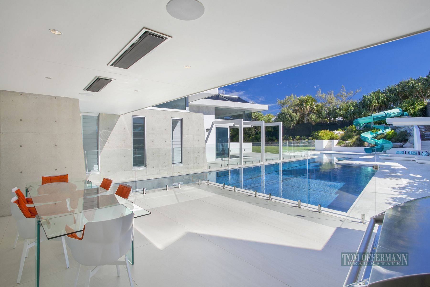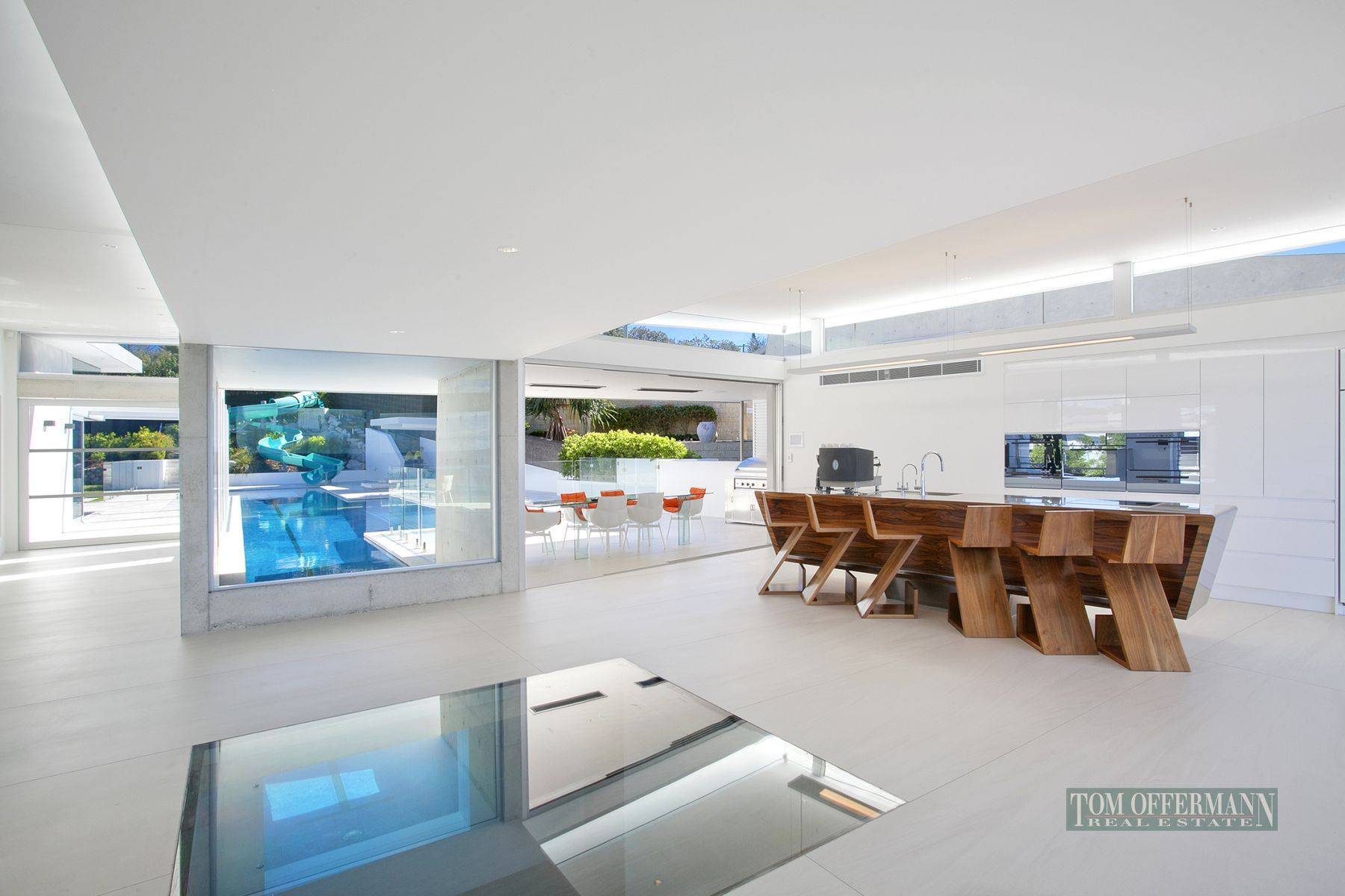 It is set across two levels with an unimpeded outdoor connection the focus of each room, while state-of-the-art automation provides all of the benefits that come with high-tech living. The vast, open plan layout flows to a choice of outdoor spaces, including an oceanfront terrace and huge garden courtyard that has the feel of a boutique hotel with its resort-size pool featuring a 25m lap lane and the ultimate slide.