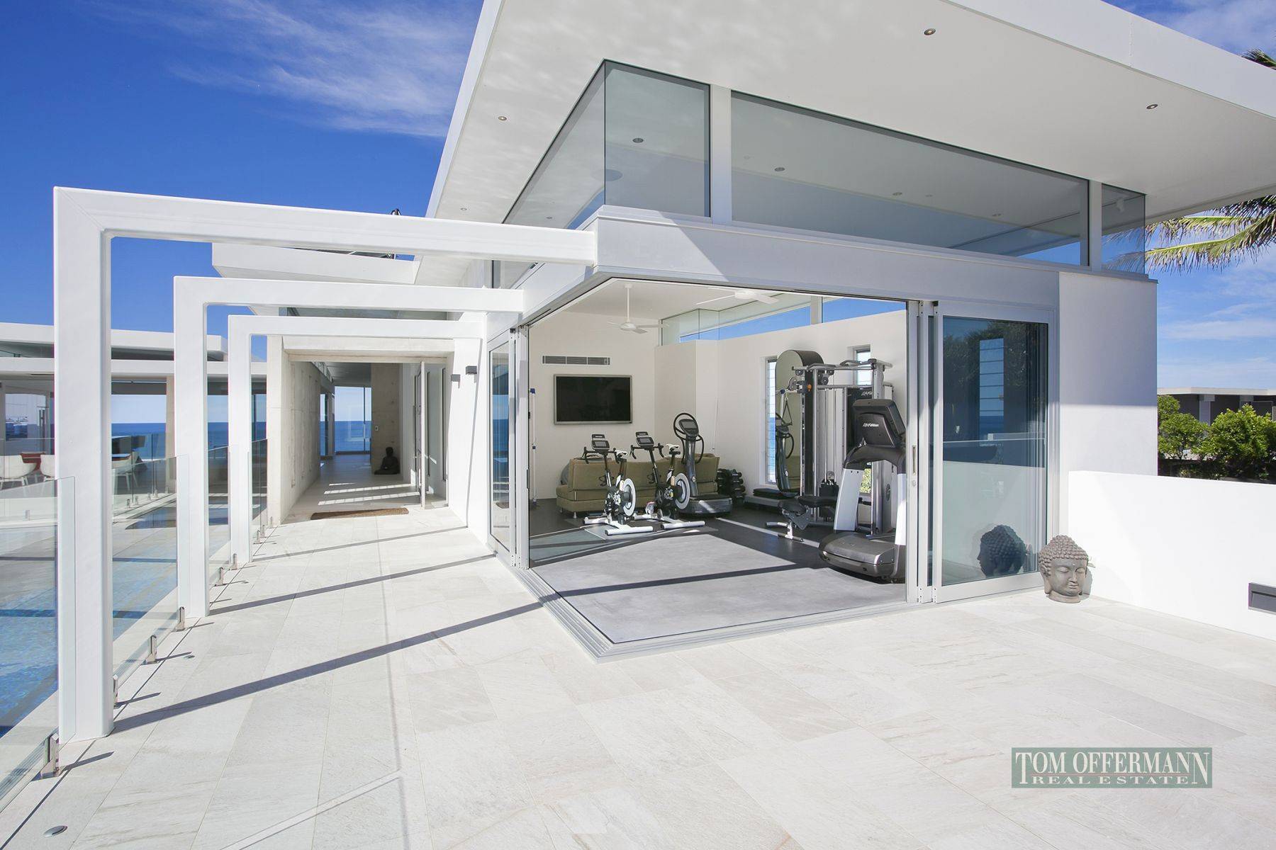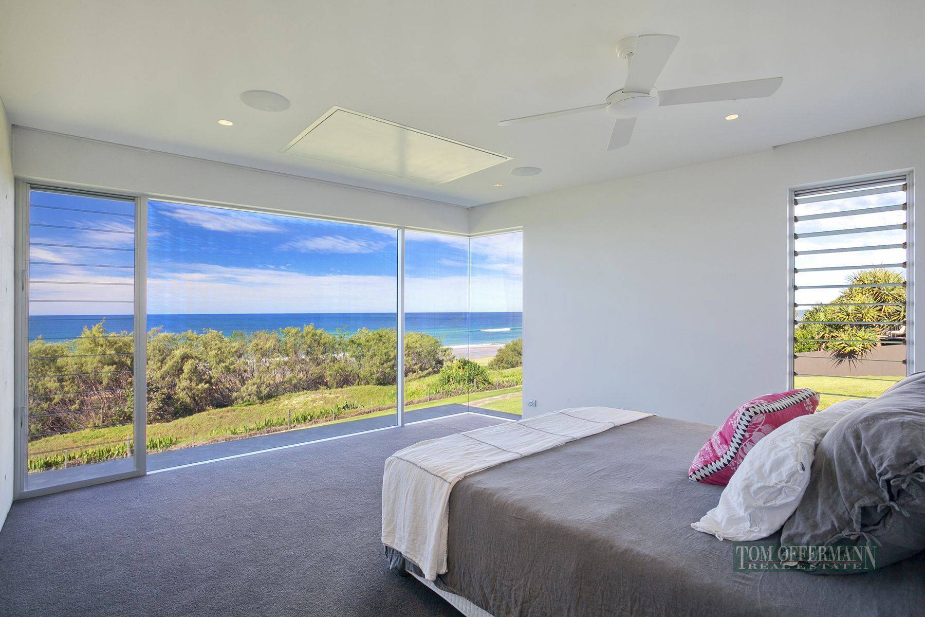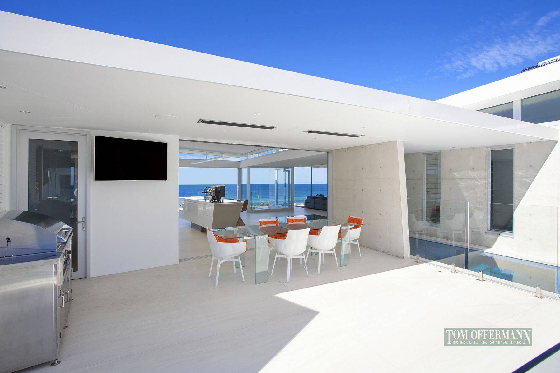 The home oozes bespoke luxury from the subdued neutral palette to the exposed concrete walls, the sleek white kitchen with scullery to the sublime Swedish sauna and five car garage that feels more like a showroom. Situated just 10 minute's drive to Hastings Street, it promises beachfront living at its best with direct access to one of the quietest stretches of sand on the coast.