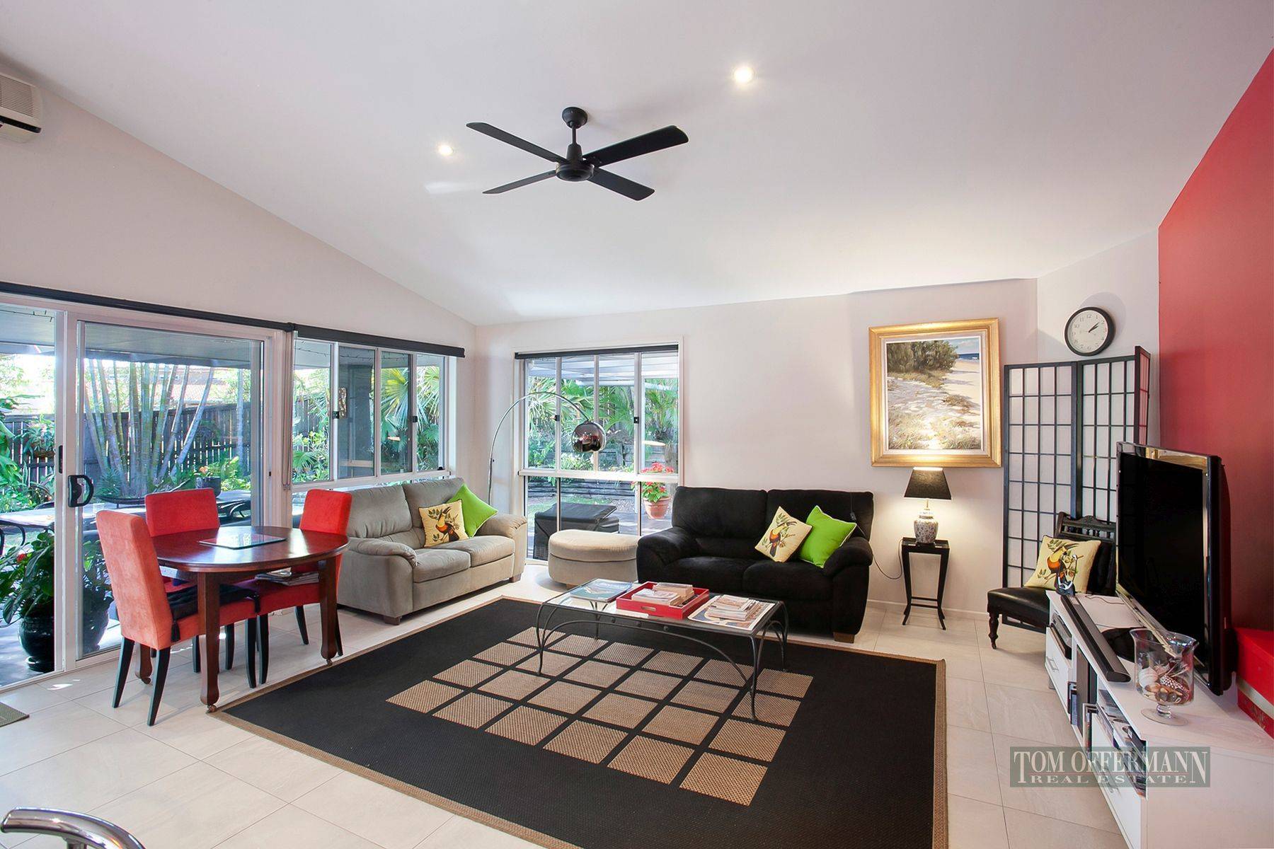 Tropically landscaped grounds and salt water in ground swimming pool create the relaxed lifestyle on offer at 8 Hawthorn Grove. This easy single level, light filled home has been updated and offers privacy and seclusion. There are welcoming high ceilings in the open plan kitchen and family room and a splash of colour in the kitchen for something different.