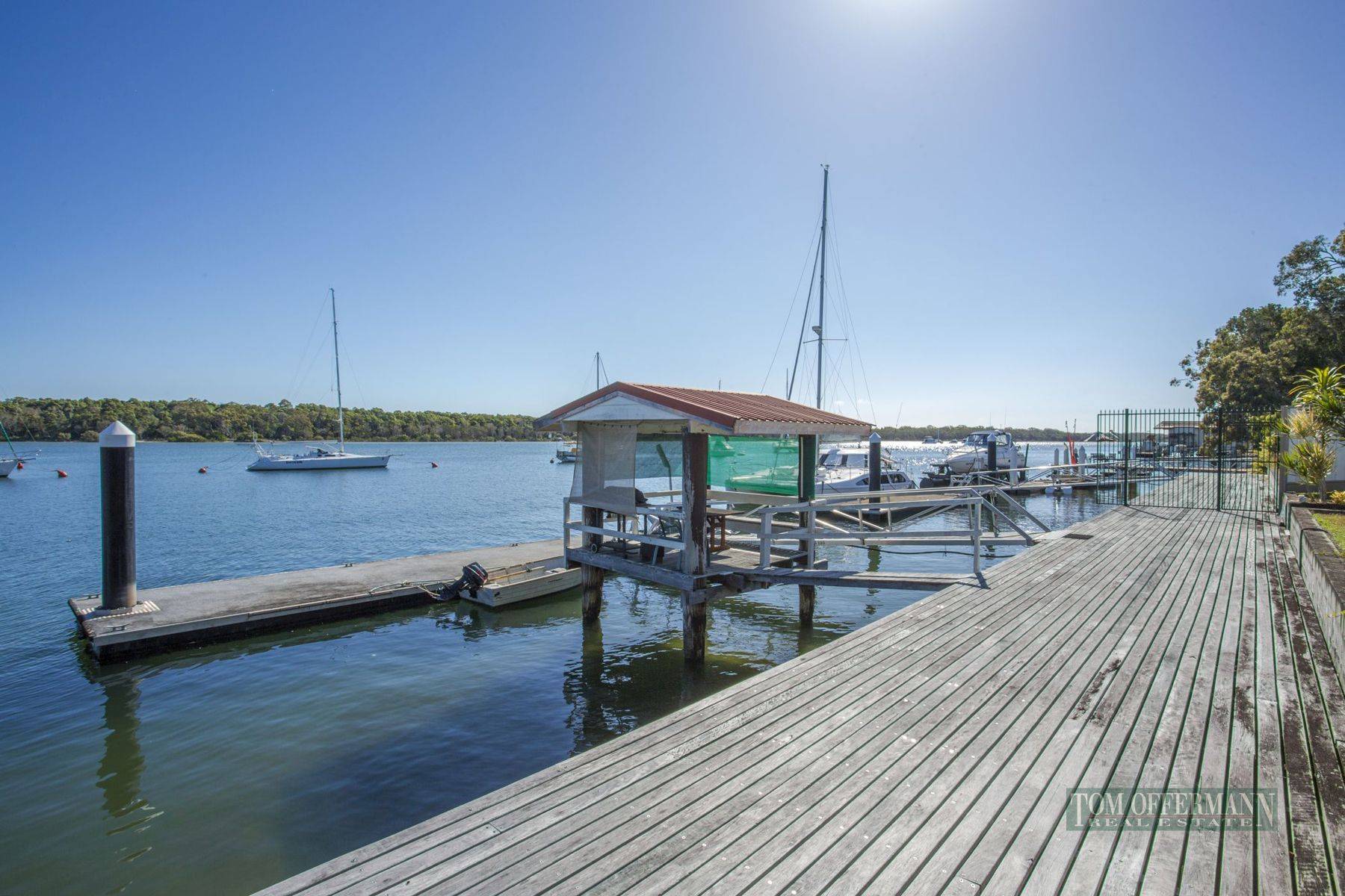 Number fifteen sits on the northern end of the waterfront esplanade, with its own twenty plus metre absolute waterfront and fantastic infrastructure ready to accommodate large and small craft with ease. A two storey face brick and plank clad humble structure would really shine with a few weekends of paint and polish. A wide timber boardwalk spans the deep waterfront, with kayaking, paddle boarding, fishing and crabbing direct from the fourteen metre pontoon.