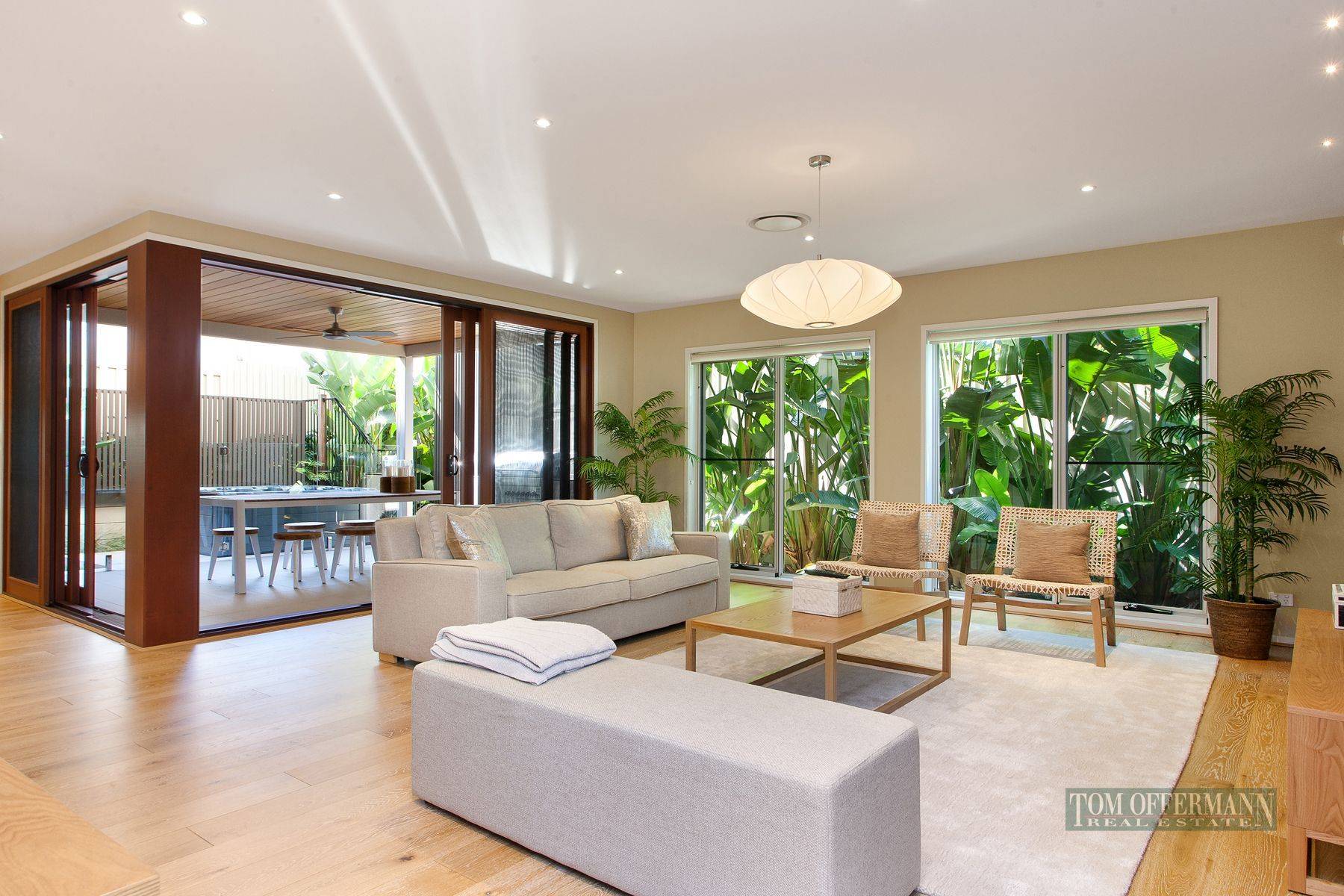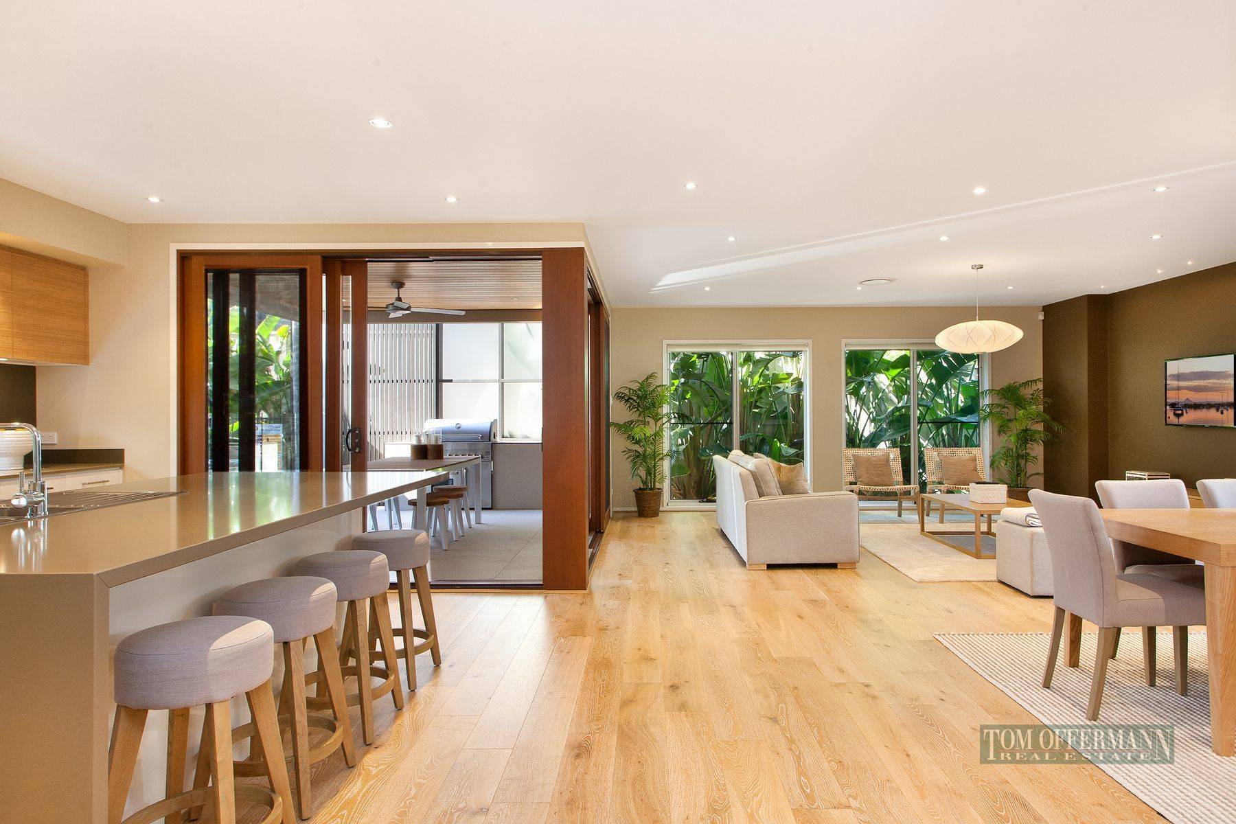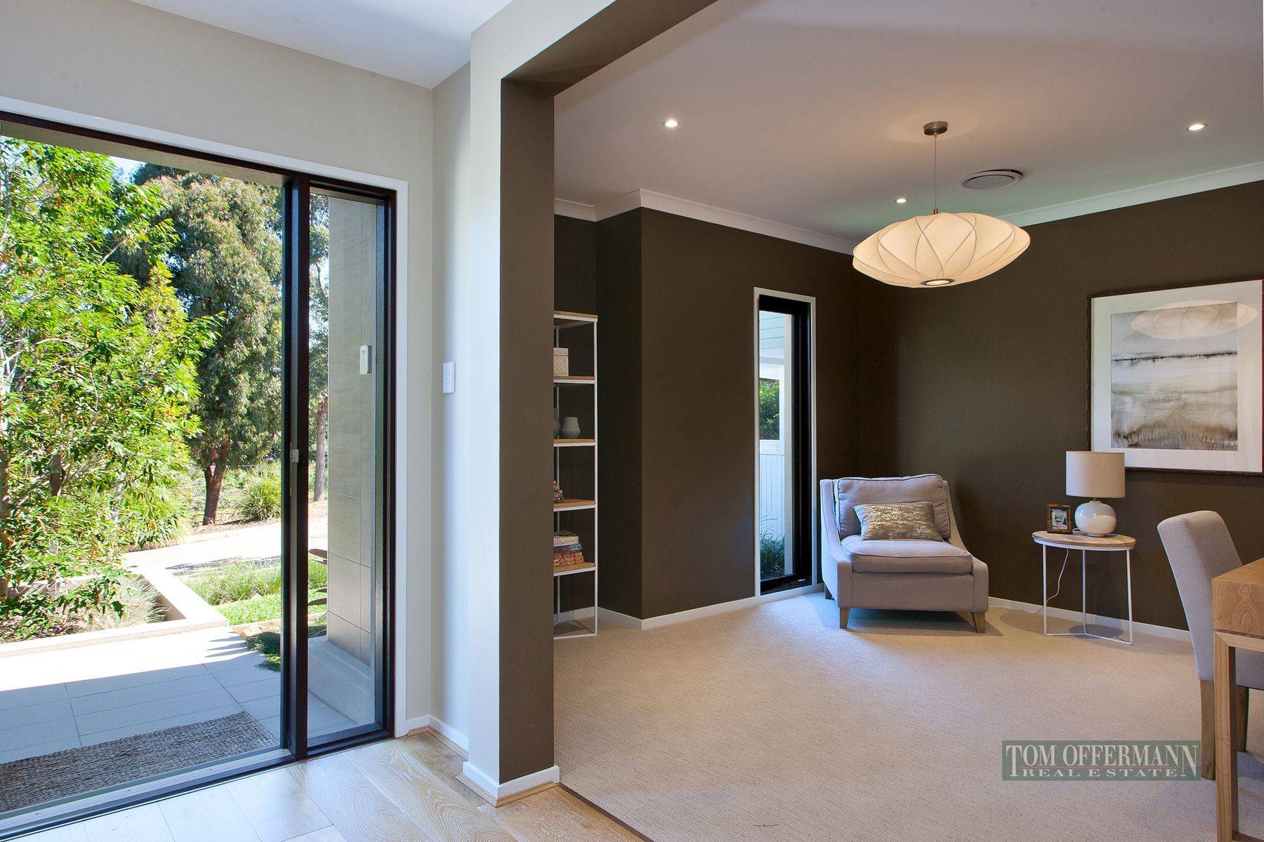 Simply step inside and look beyond the long timbered hallway to the green backdrop and be instantly impressed. The open plan, overly-generous main living, dining areas and kitchen with high ceilings, plantation shutters and barely perceptible timber doors to the tiled alfresco entertaining, barbecue and spa area, give the home a Hampton's beach house feel. The high-end quality throughout is obvious and there's a real sense of belonging. From an acoustic viewpoint the office/library space and media/guest room can be closed off.