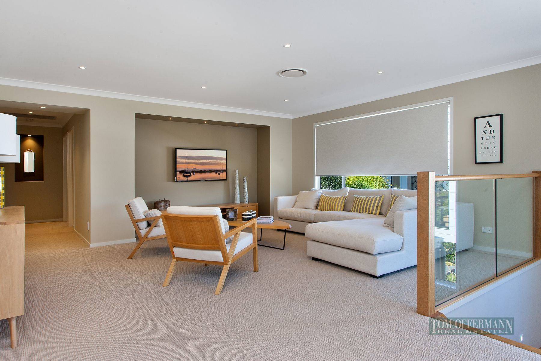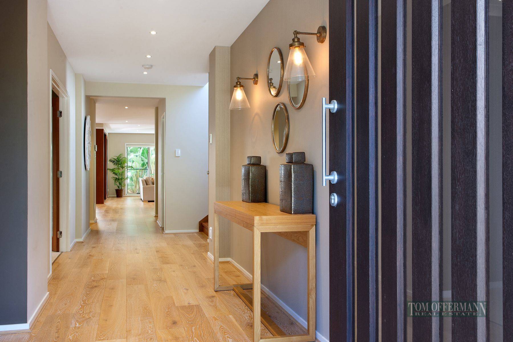 The staircase to upstairs reveals another relaxation space and four bedrooms, all with walk-in robes.
