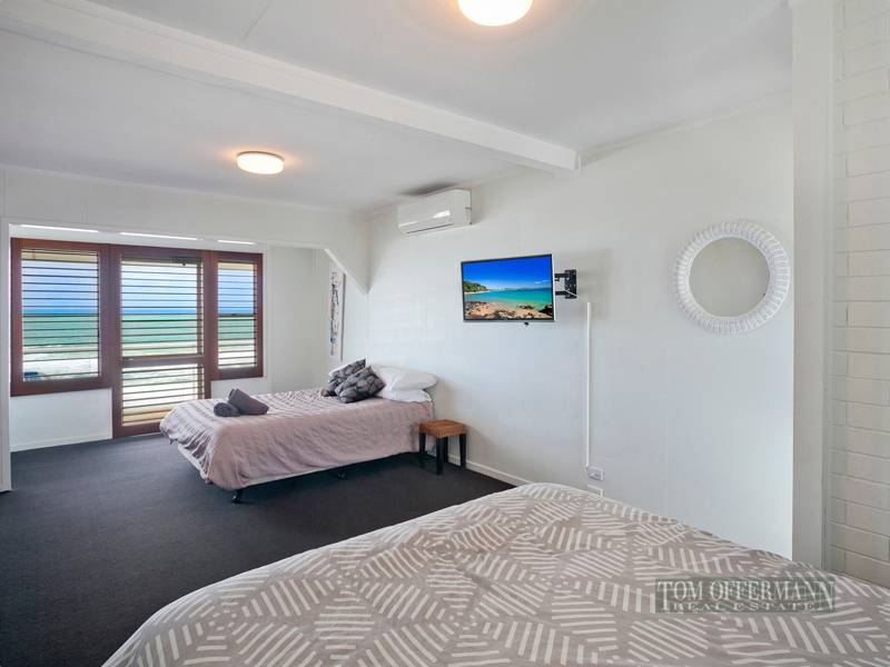 * Classic features with timber floors, kitchen flowing out to eastern covered deck, air conditioning, lovely ocean from the ground level.