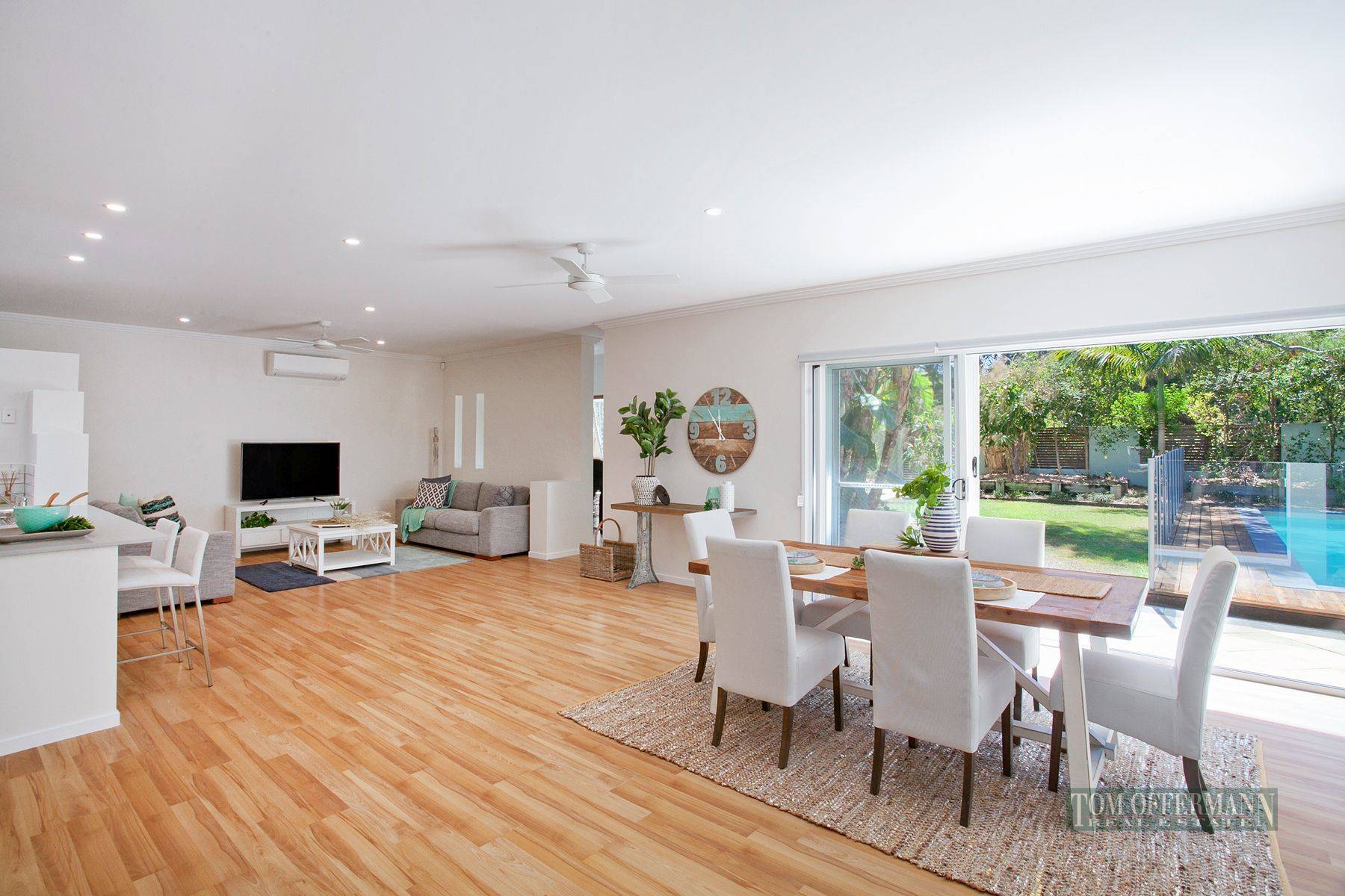 Refined by nature, where family fun begins, located only approx 400m walk to the beach. This spacious, easy single level home sits on a large 1088sqm level block backing directly onto National Park. This national park backdrop creates a peaceful, private and harmonious ambience and the house is set back privately from the street.