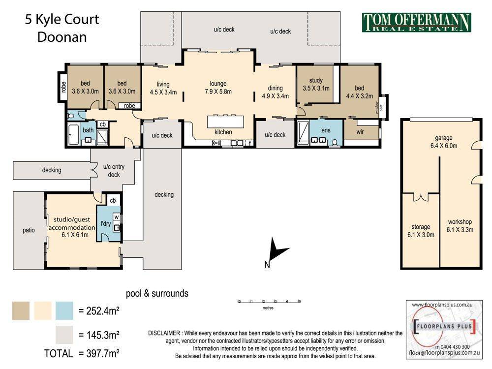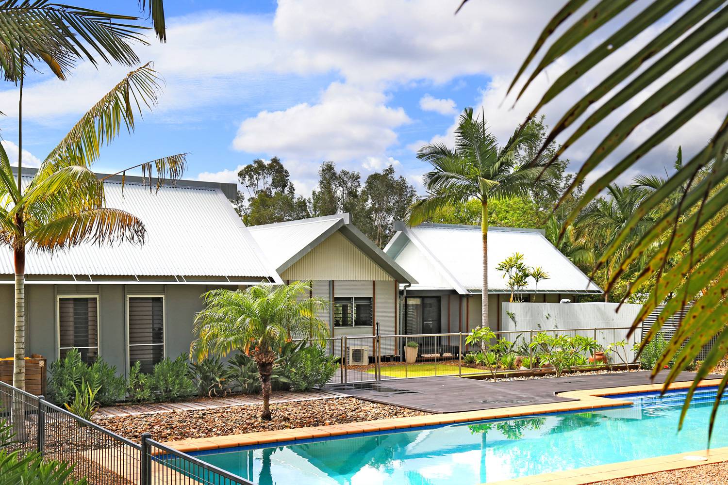Features: Architect Gabriel Poole, build by Houses by Hand, 4766sqm(app1.8acres), ducted air-conditioning, 20,000 gallon rainwater capacity, easily maintained grounds, established gardens, study, one level, big garage, workshop and storage, studio/extra guest accommodation, 10 minute drive to Noosa River.