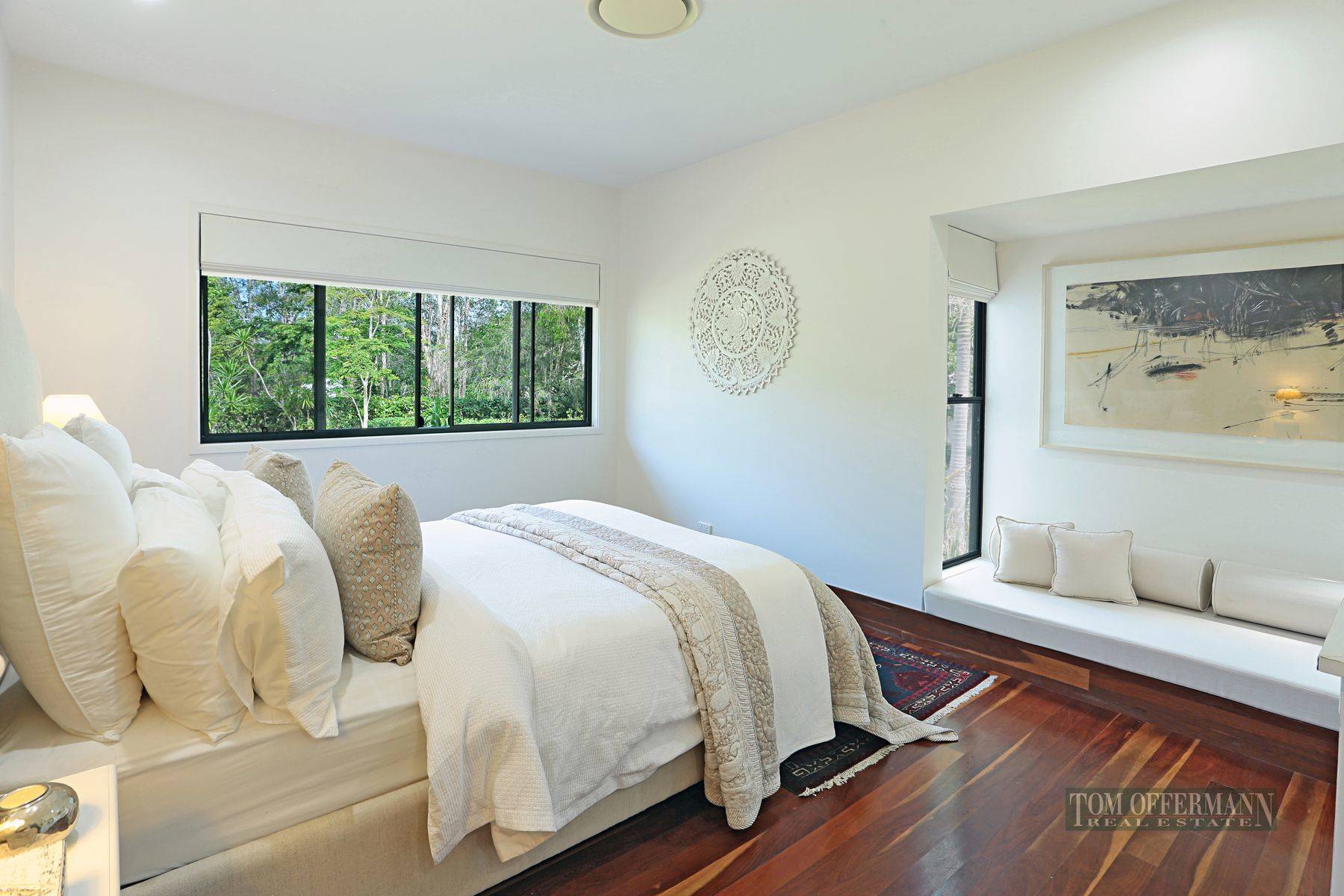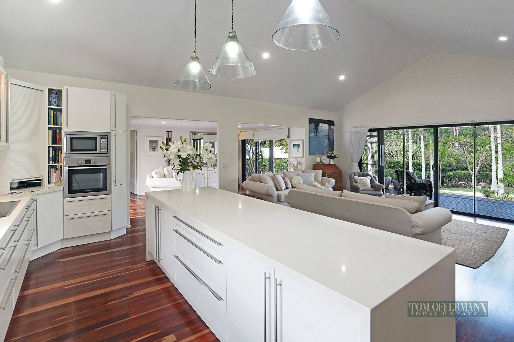 Set to reward new owners with a daily dose of country air, birdsong, picture window framing lush gardens and a breeze in the tree tops, this masterfully constructed hinterland residence languishes across its gently sloping garden allotment a scenic drive into Hastings Street and Noosa Main Beach.