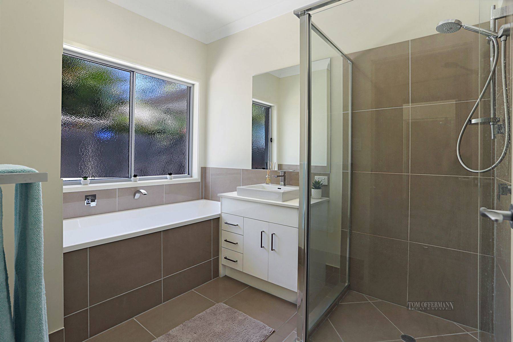 The property has been tastefully landscaped to match the interiors it offers plenty of tropical established plants and has a serene and peaceful ambience. It's the perfect place to just sit and listen to the native bird life that surrounds the area. There is plenty of level grassed area with ample room to add a pool or just ideal area if you have pets or children that wish to play and the grounds surrounding the house are fully fenced. There is also a 5000l rainwater tank to irrigate the gardens.