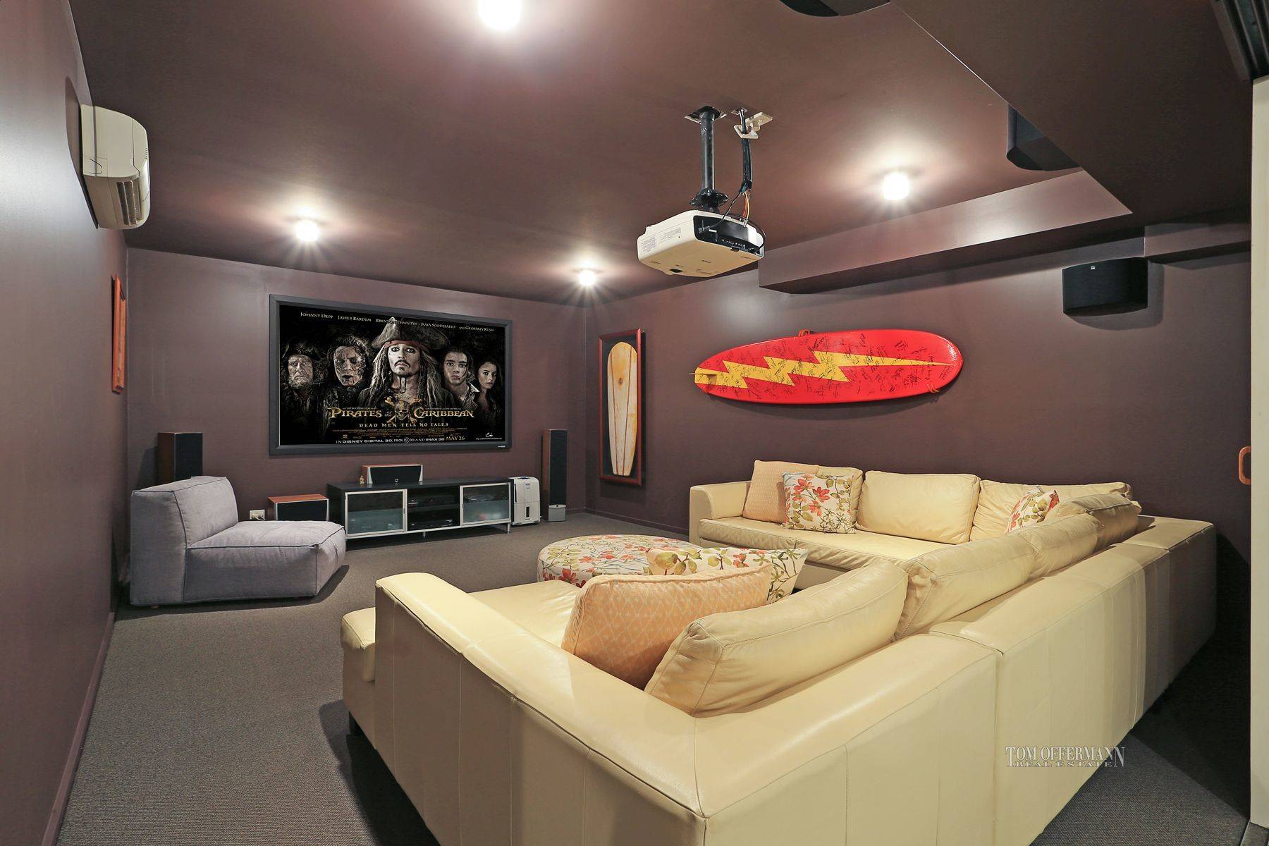 Another marvellous surprise is the lower level with its climate-controlled wine cellar. A large home theatre with digital projector, games room, 'boardroom' and a handyman's dream workbench. There are bathroom facilities especially designed for those returning from a surf.