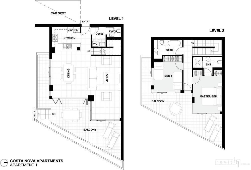 Upper level 2 bedrooms with 2 stylish bathrooms
