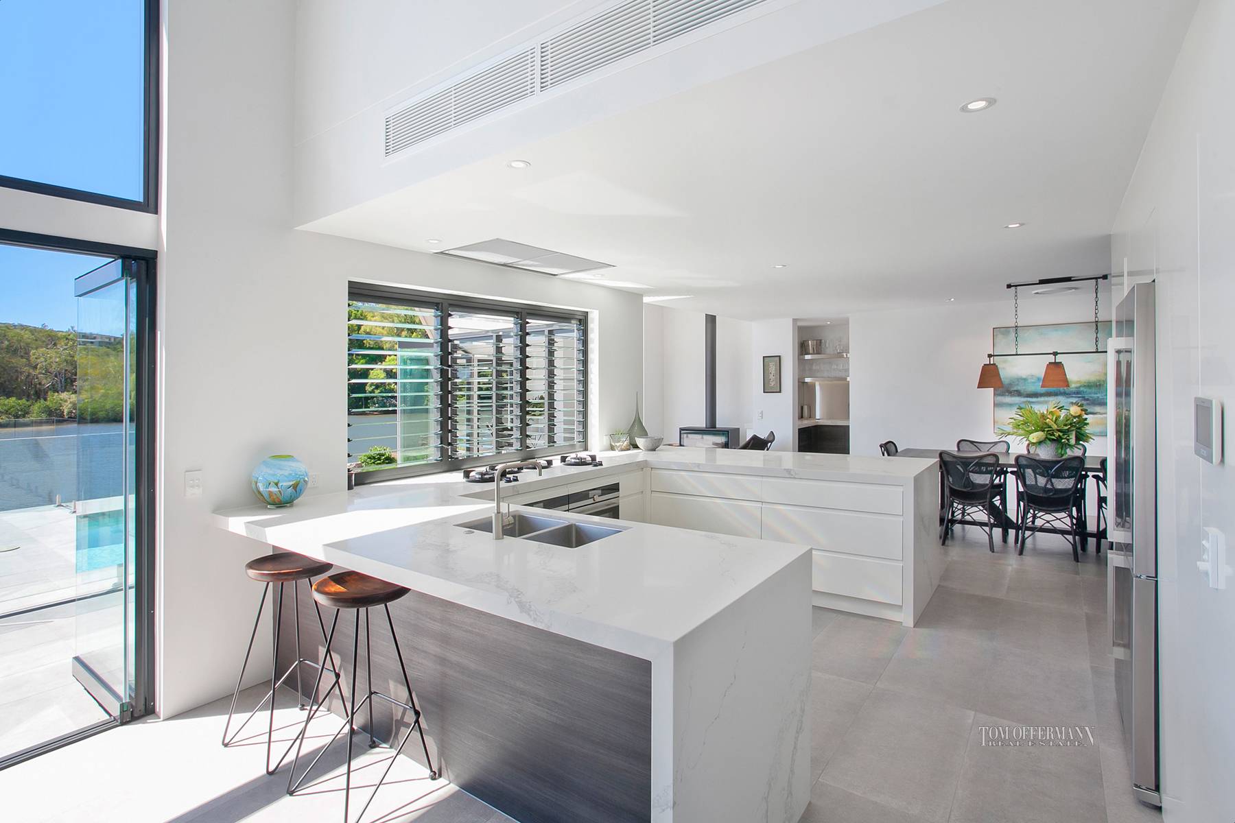The central hub for the sweeping Italian porcelain-tiled living and dining spaces also the lounge is a lavish kitchen plus a butler's pantry and prep kitchen looking out to the herb garden. This would surely suit any wannabe Nigella Lawson and let's not forget the wet bar.