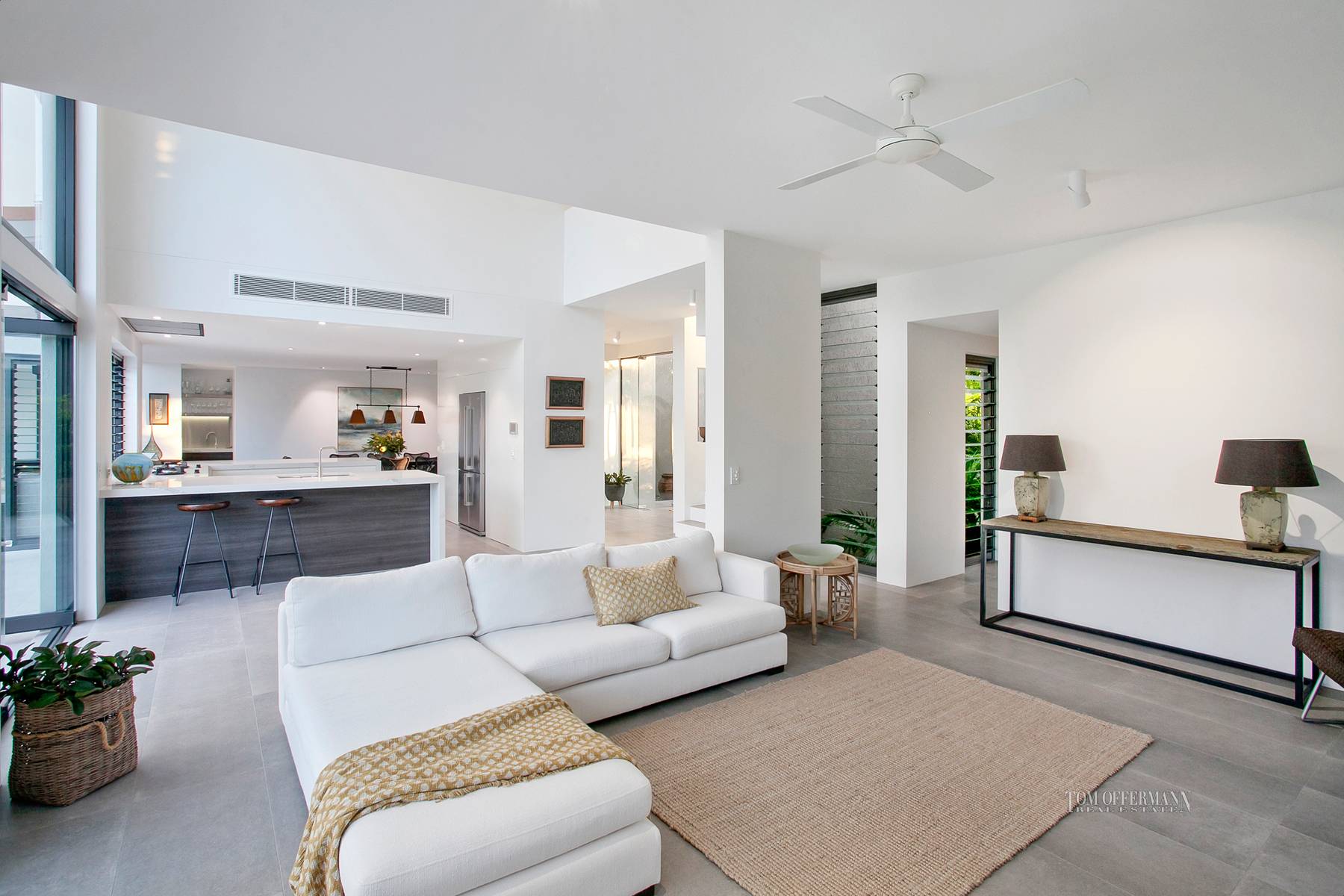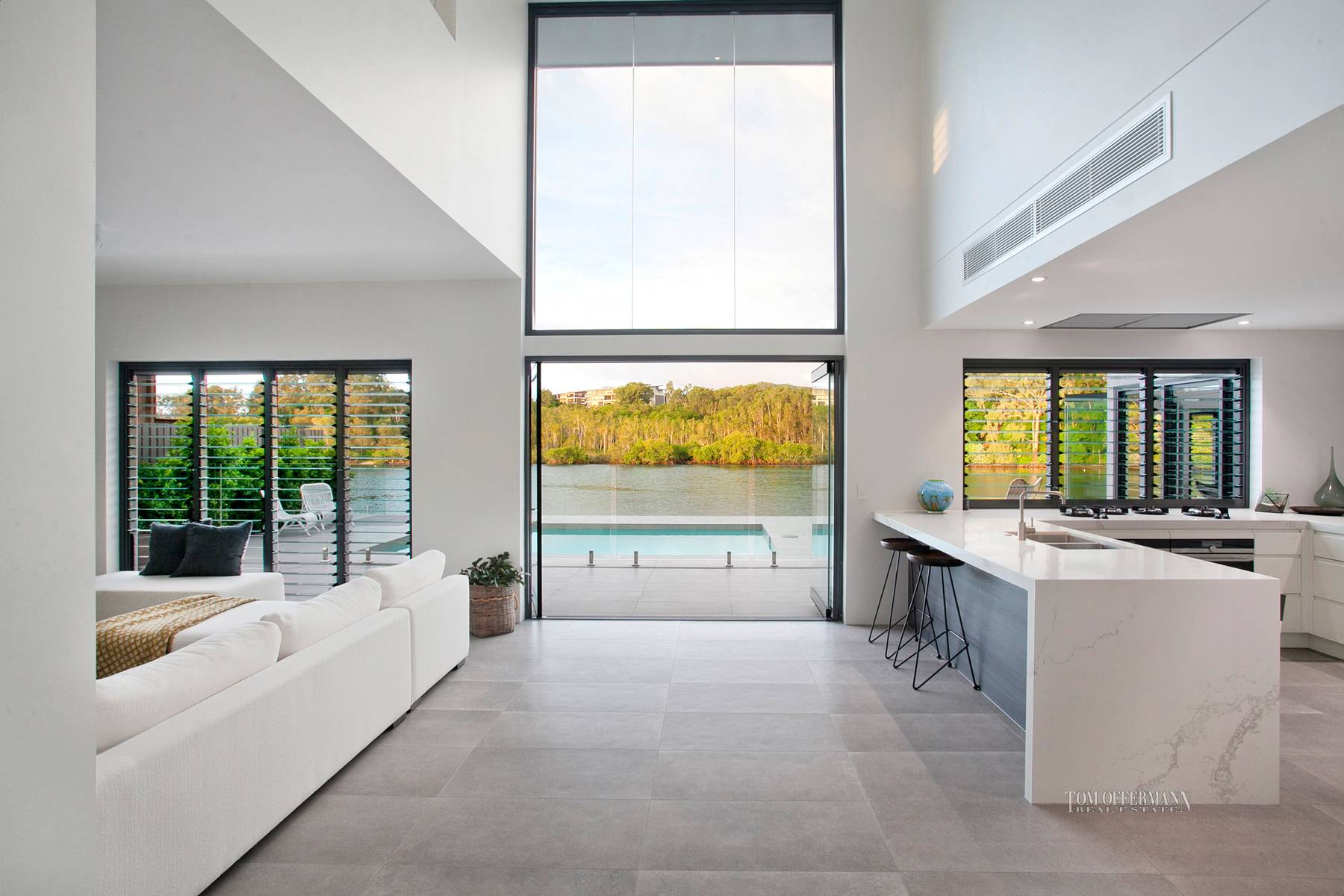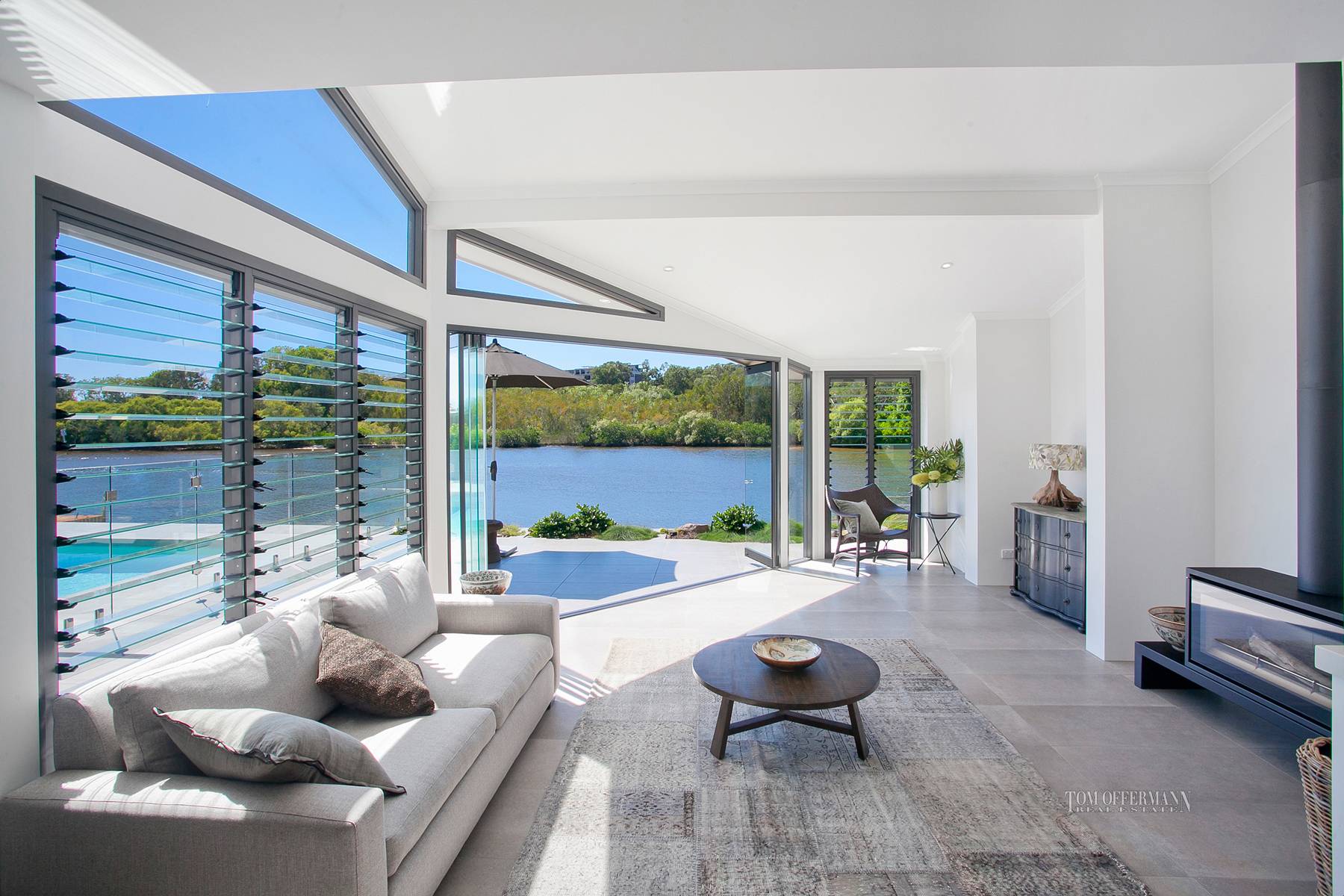 Layers of abundant light through double height floor-to-ceiling windows, breezes via frameless slide-away glass walls, banks of cedar shutters plus water views from every room, are a testimony to Alan Starkey's original design. A recent back-to-bones total re-imagination by Paul Cooper Homes makes it the epitome of a very classy resort-style entertainer.