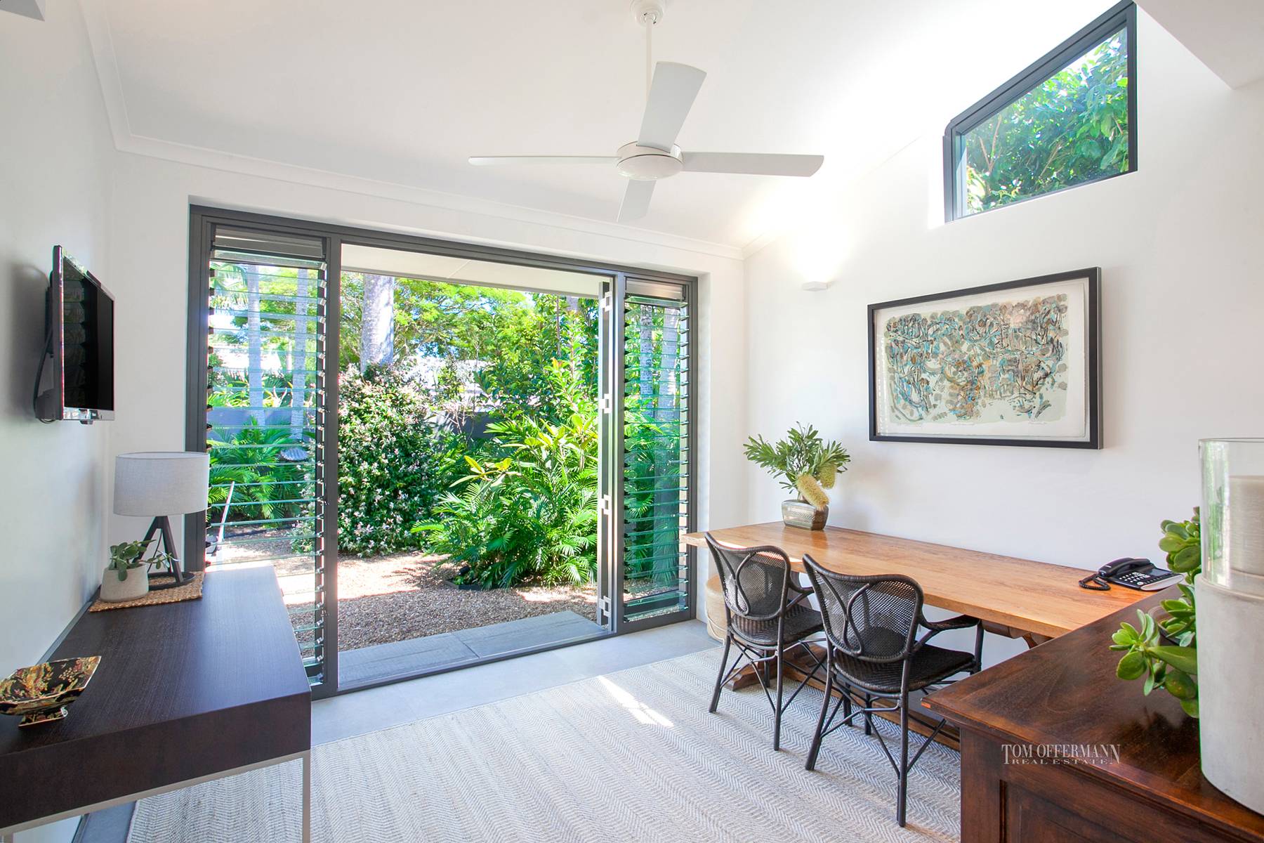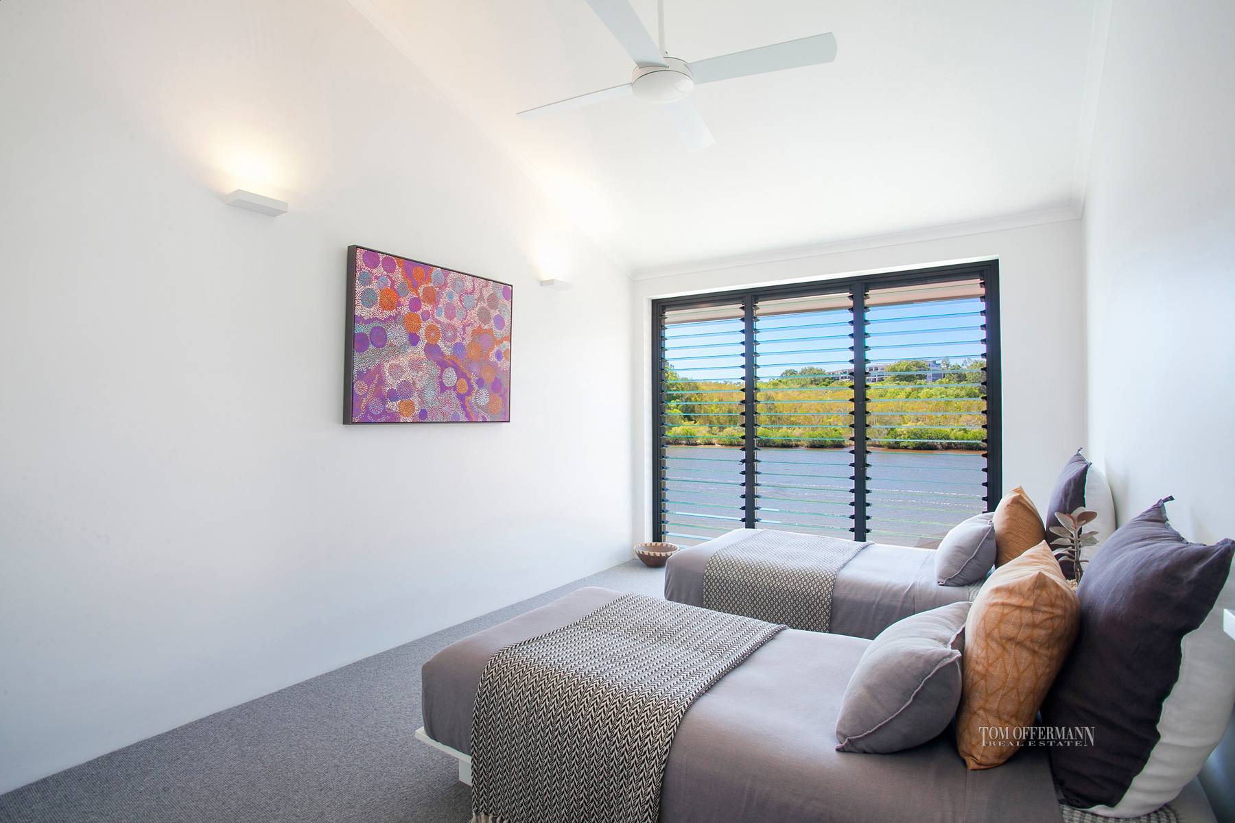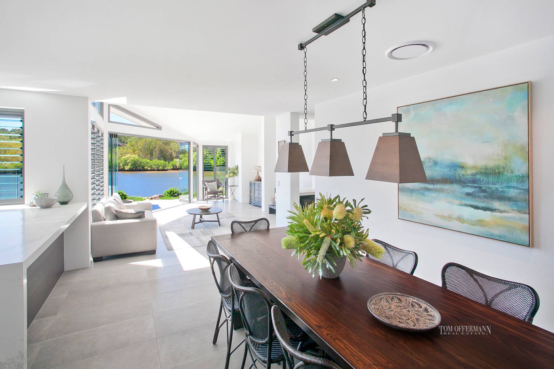 Jaw-dropping moments begin at the front entrance with its oh-so-wide double glass doors and a striking art piece cleverly formed into a flower using pieces of Panadanus prop roots. It's obvious the interior design harmonizes perfectly with its exterior and the spellbinding north-easterly wide river backdrop.