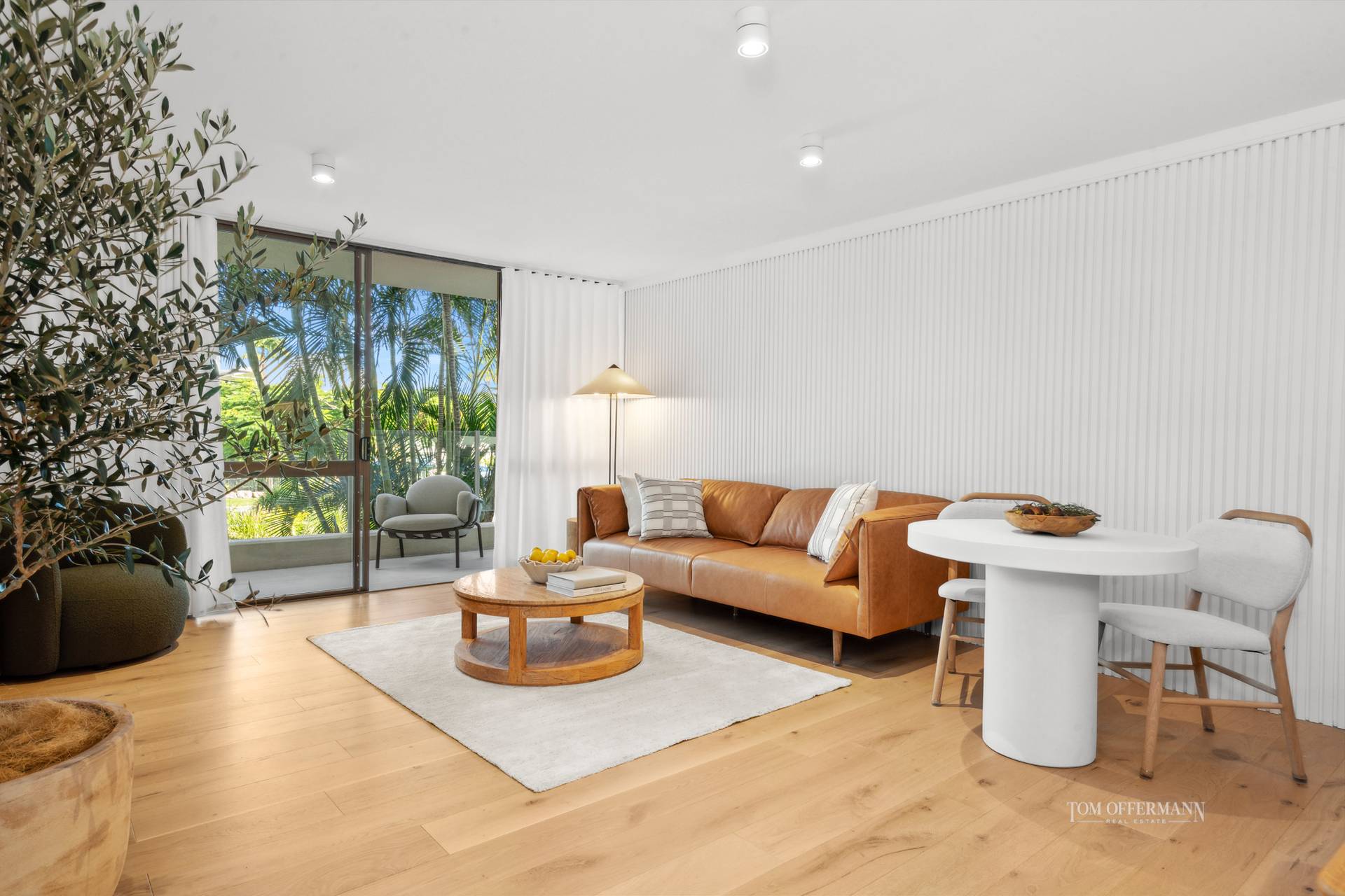 • About: 1st level; aircon/fans European oak engineered timber flooring; linen curtains + block-outs; security screens; new/upgraded electrics, hot water system & security; entry/open plan living/dining featuring Mont Blanc fluted micro-cement; bedroom w textured tufted loop pile, timber fronted BIR, doors out to terrace; bathroom w feature travertine kit kat wall tiles; mirrored upper cabinetry for extra storage, white basin-topped timber cabinetry, clear oak panelling hideaway for Bosch washer & Fisher & Paykel dryer