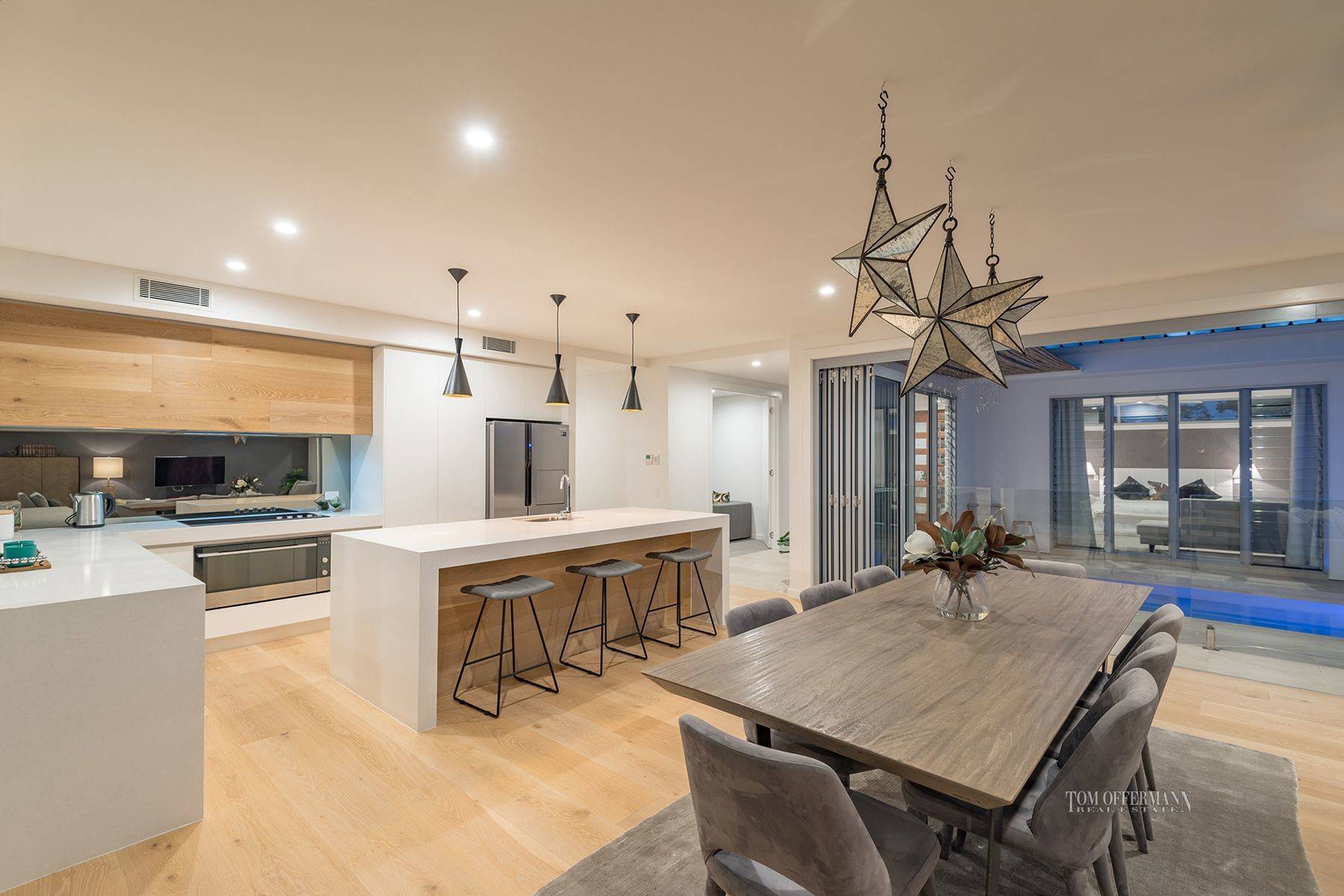 French oak hardwood floors, waterfall bench top and high end appliances all complement the quality of build and simplicity of design.
