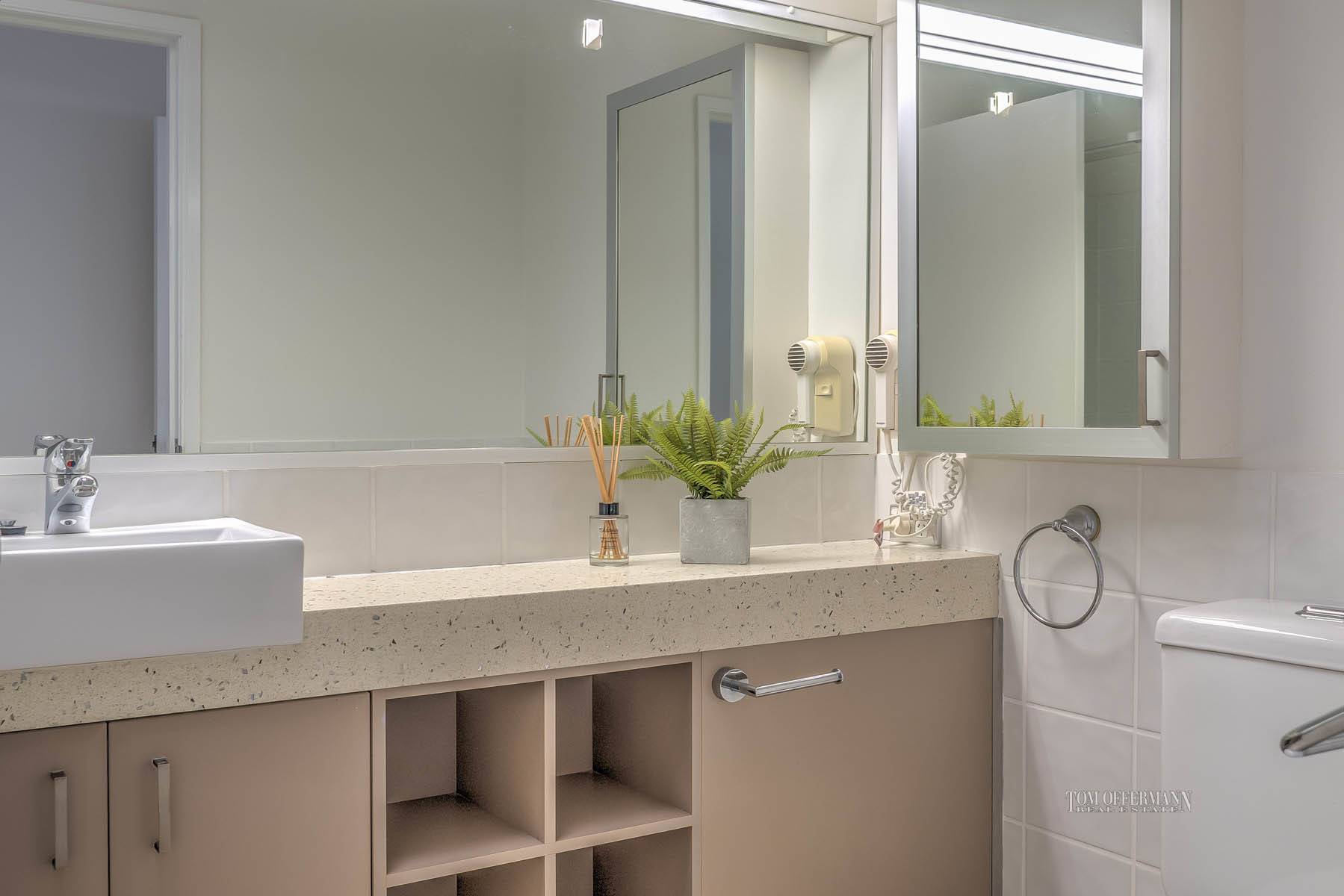 Soaring ceilings in the dining area, Caesar stone tops in the kitchen and bathrooms with large 600 tiles throughout the living areas