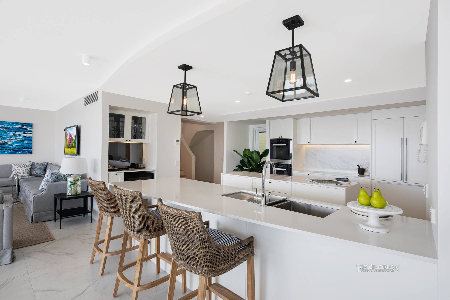 Those with a penchant for entertaining will appreciate the Caesar stone-topped double island benches, Carrera marble splash-backs, walk-in pantry, high-end appliances, Vintec beverage centre fridge in the bar and casual meals area.