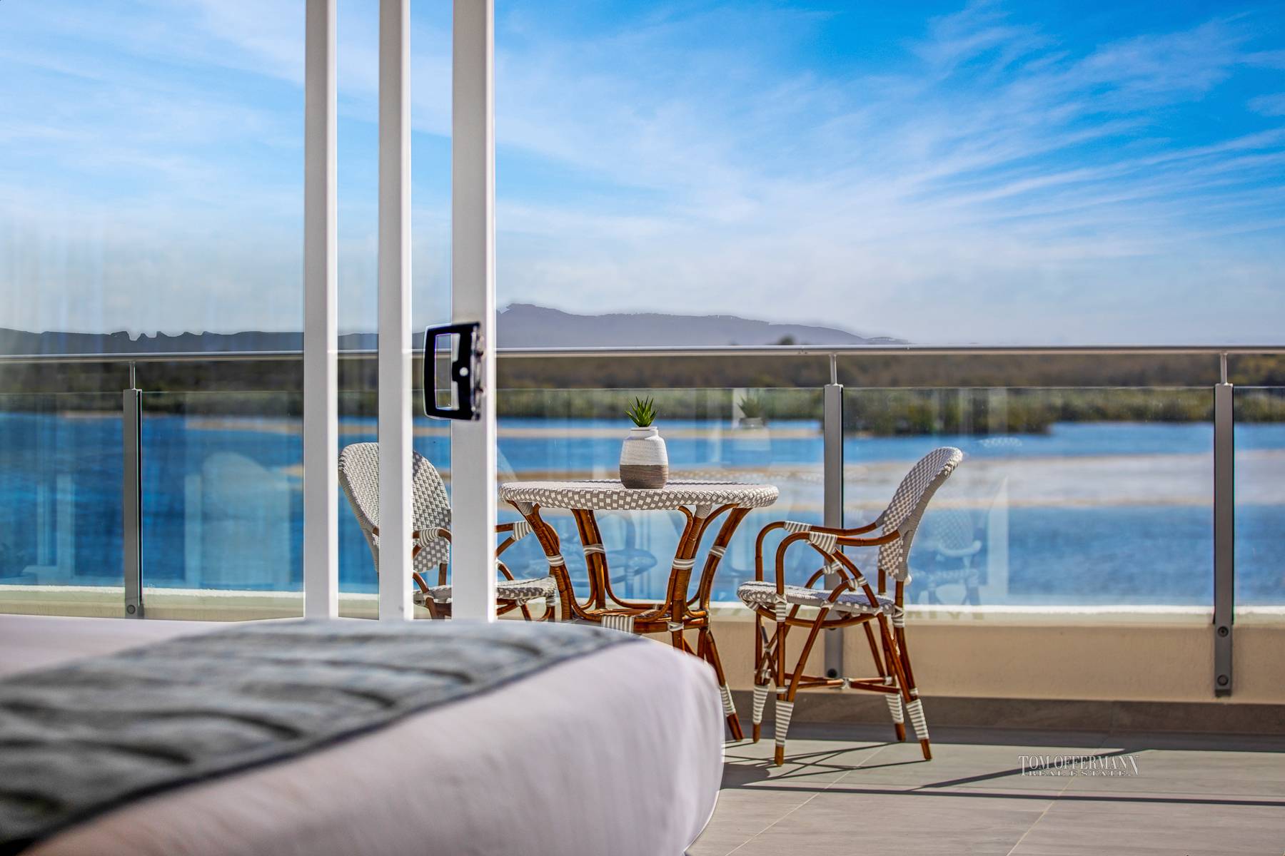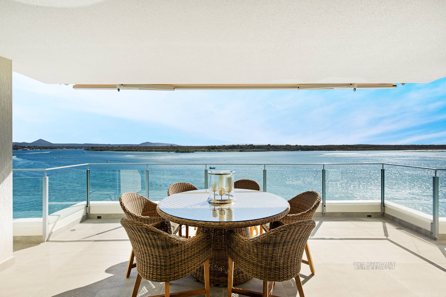 A ravishing penthouse with a sky terrace, has awe-inspiring seascapes across the Noosa River to the North Shore and beyond to the Coloured Sands; south along the park-fringed Noosaville foreshore which stretches to the Everglades as well as a backdrop of Mount Cooroy; also a gull's eye view to the right, of the azure waterways around Noosa Heads and its national parks. And for the exclusive use of Las Rias residents, let's not forget the white-sand beach and jetty.